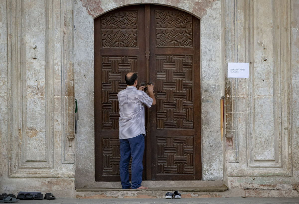科索沃共和國首都普裡什蒂納,科索沃伊斯蘭文化中心工作人員奉命關閉清真寺大門。科索沃下令關閉境內所有清真寺,建議民眾在家完成古爾邦相關活動。