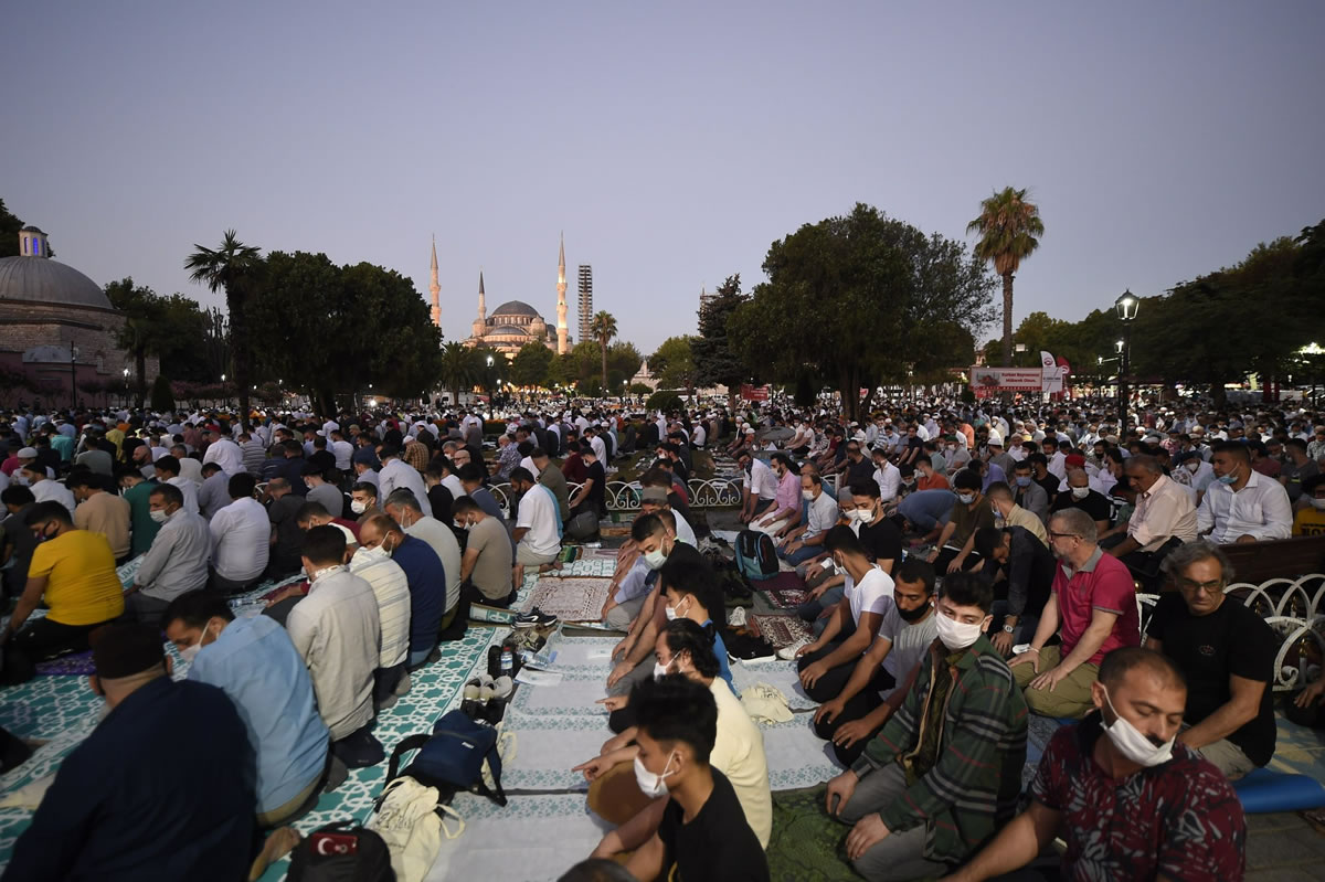 土耳其首都伊斯坦布爾,民眾在索菲亞大清真寺進行古爾邦會禮。