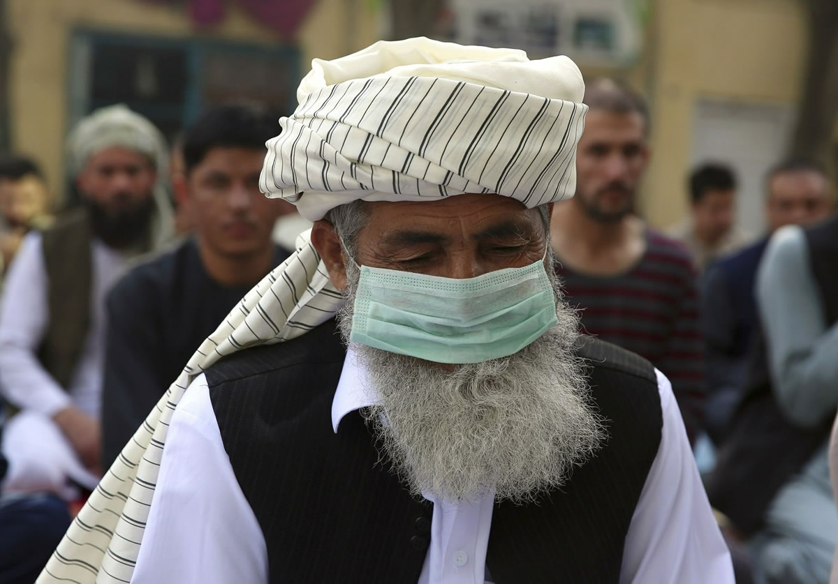 阿富汗首都喀布爾,穆斯林男子佩戴口罩完成古爾邦會禮。
