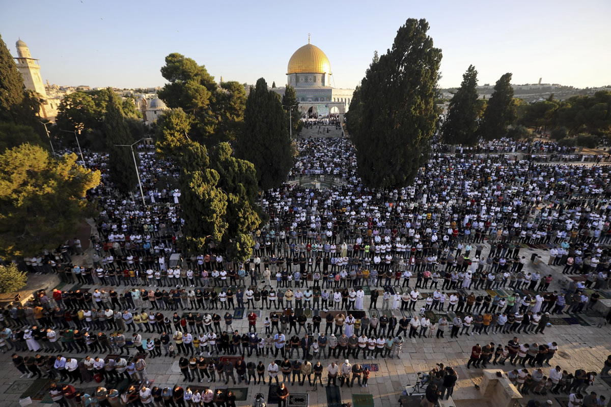 聖城耶路撒冷,巴勒斯坦穆斯林在阿克薩清真寺及圓頂清真寺廣場完成古爾邦會禮。