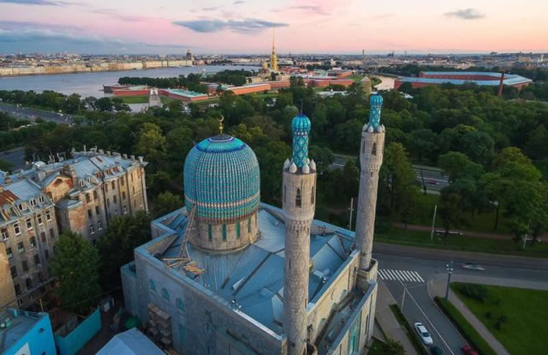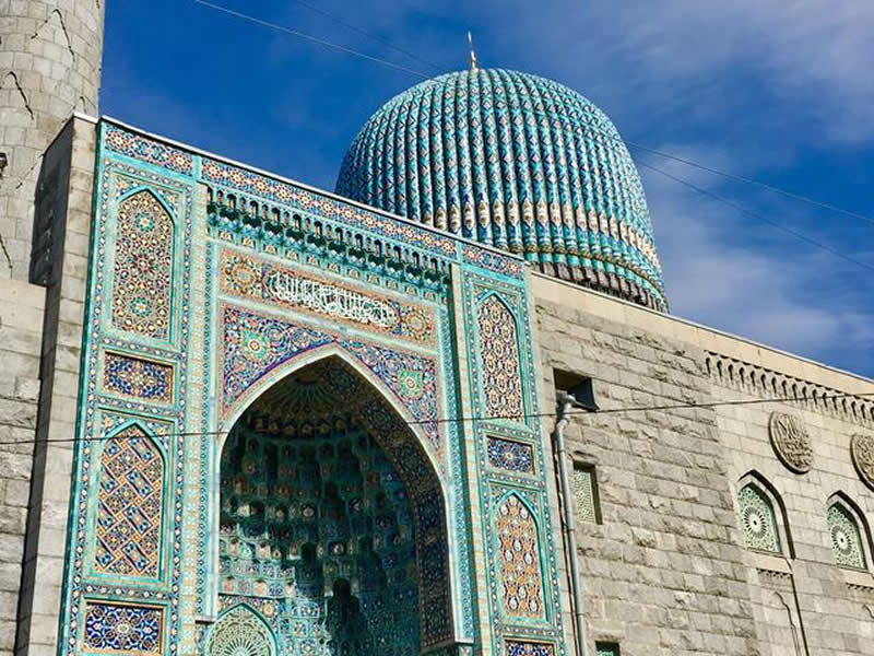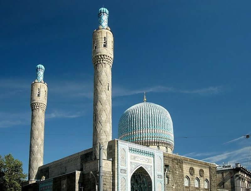 20世紀初,聖彼德堡市內約有8000名穆斯林,清真寺的建立也是為了滿足全城穆斯林進行禮拜等活動的需要,目前可以容納五千名禮拜者。聖彼德堡清真寺兩座尖塔高49米,圓頂高39米,位於聖彼德堡市中心,建築師尼古拉·瓦西裡耶夫以撒馬爾罕的帖木兒陵墓為藍本設計了這座清真寺。