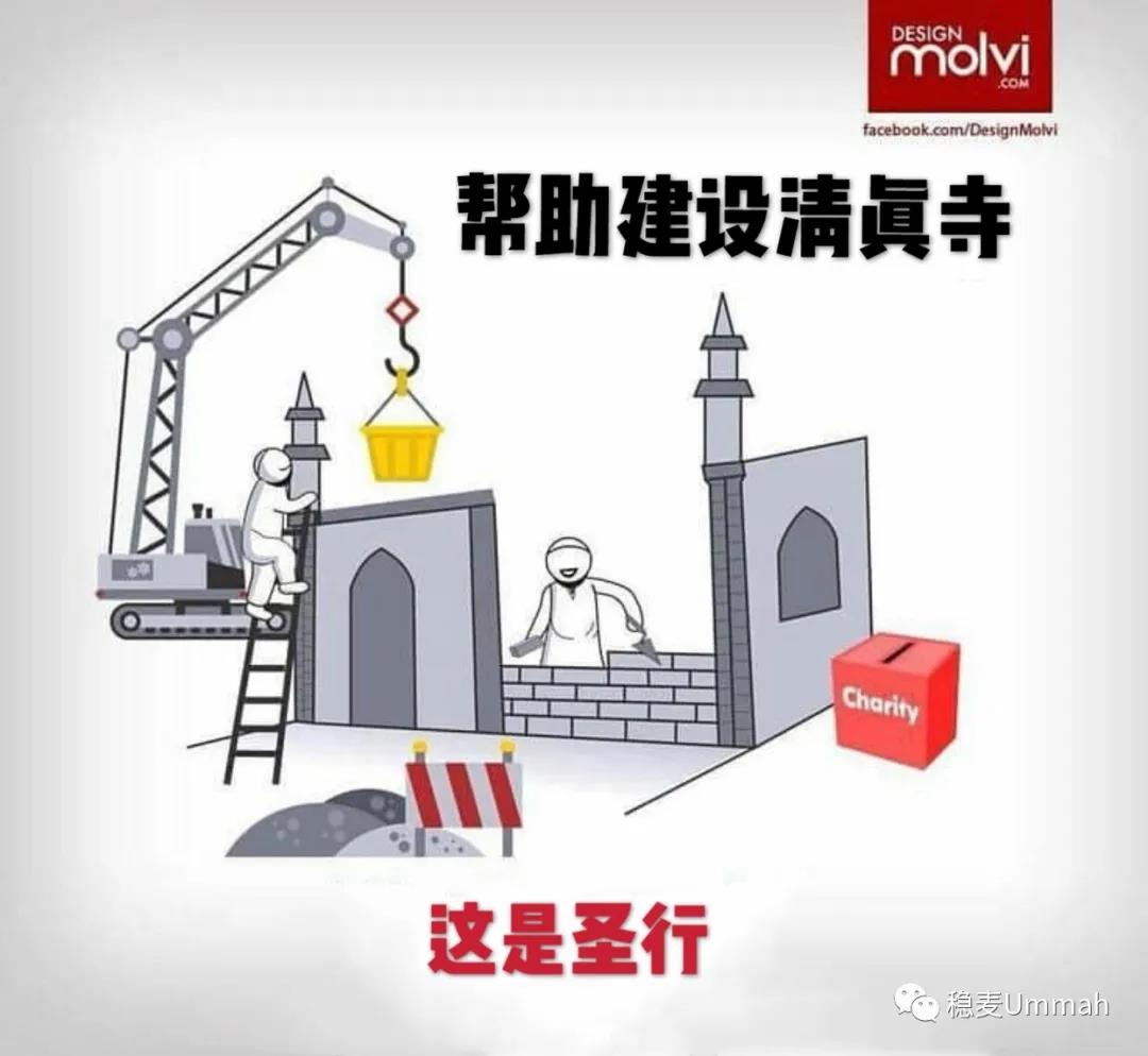歐拜頓拉·郝拉尼傳述:穆聖ﷺ曾說:‘誰為尋求安拉的喜悅而修建一座清真寺,安拉將為他在天堂裡建造一座相等的宅第。”——《穆斯林聖訓實錄全集》