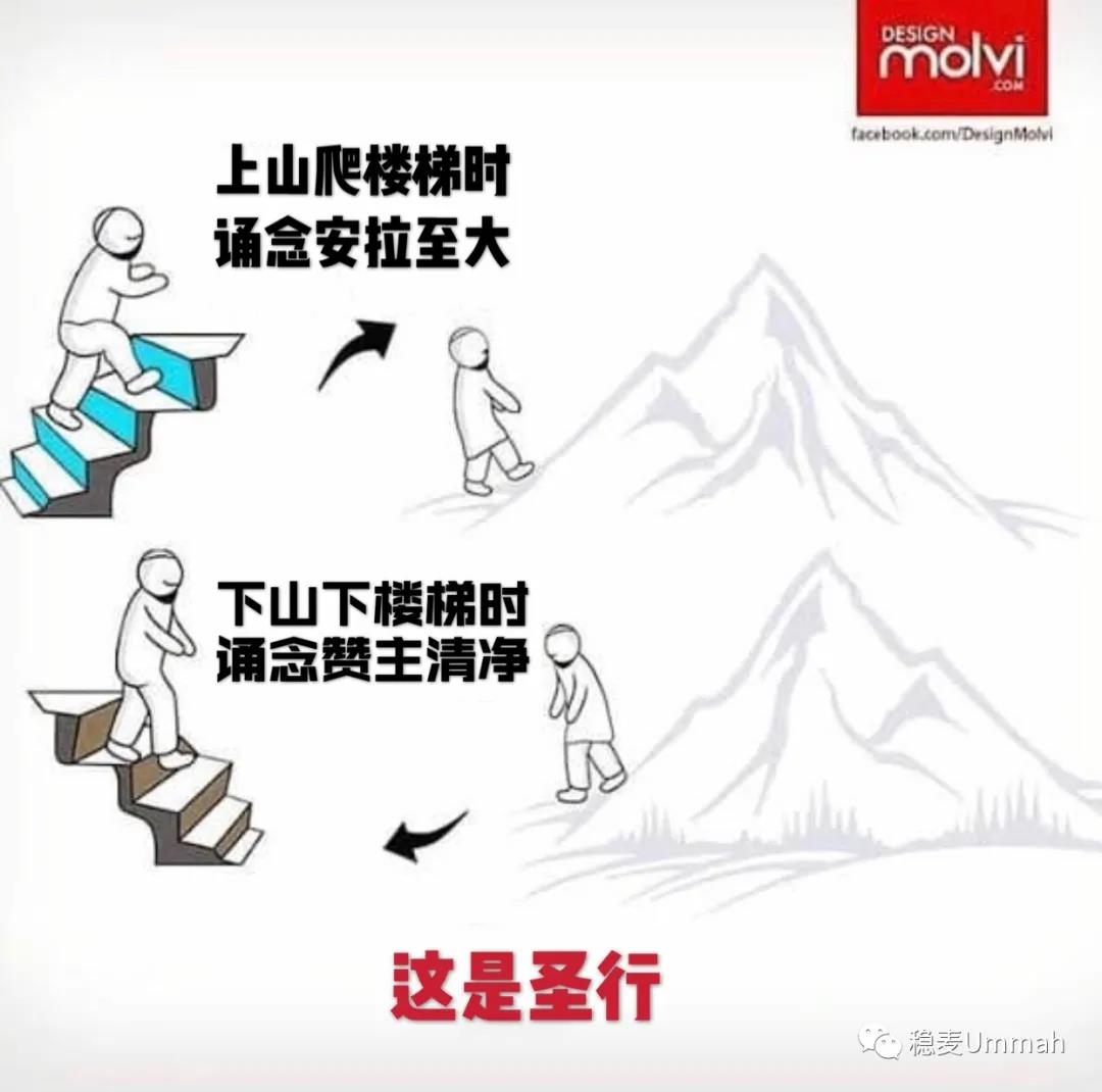 先知ﷺ及其將士們當上山時念至大詞,當下山時念清淨詞。拜功也是如此。 ——《艾布·達烏德聖訓集》