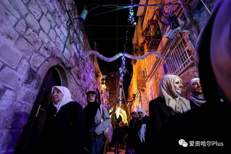 在巴勒斯坦的古都斯,古都斯和遠寺的守護者們在上周便開始到來裝扮這座千年古城,在每條街道和巷道,在每一個浸滿了歷史滄桑的青石小道上,古都斯的青年守護者們將街道裝扮得色彩紛呈,而在古都斯的老城區內,各種琳琅滿目的糖果和糕點,則擺滿了街道,禮完拜後的人們會捎帶上些給家人