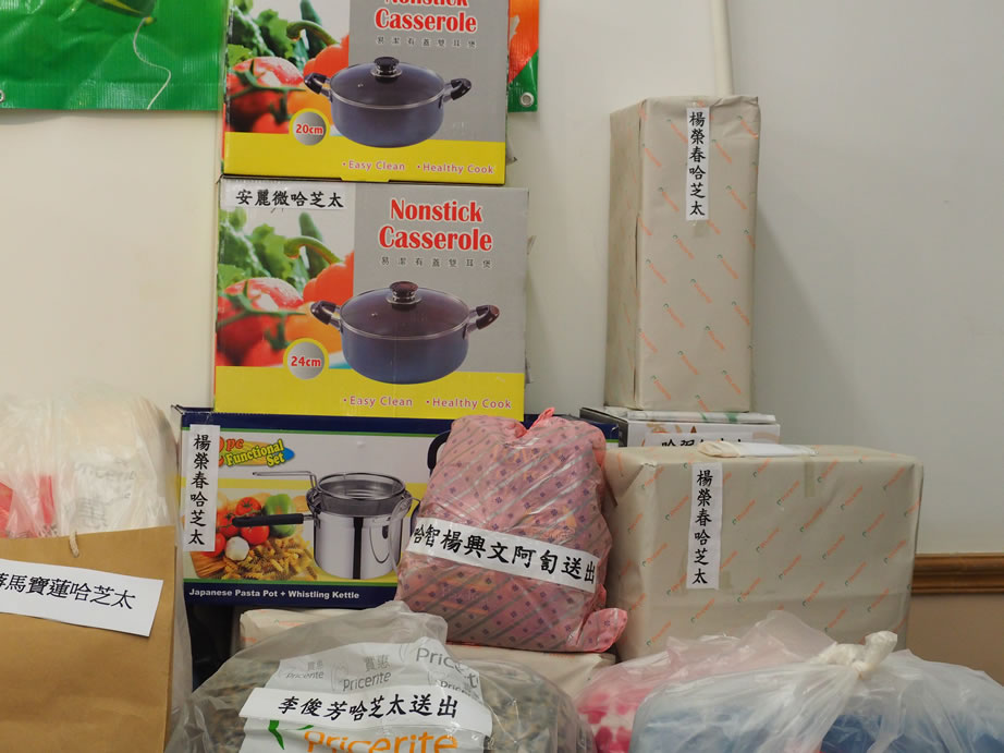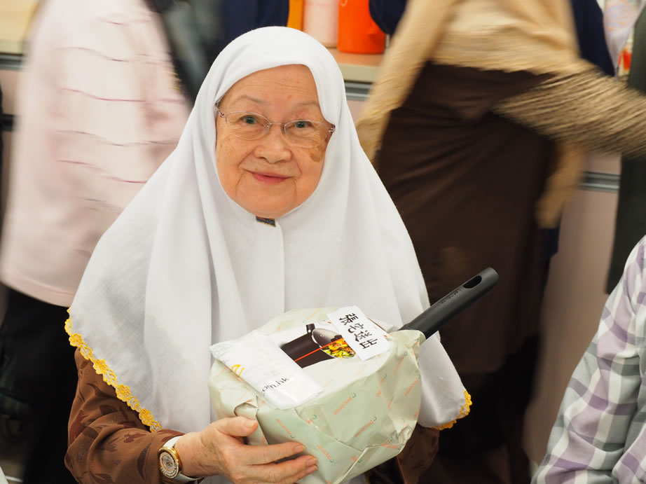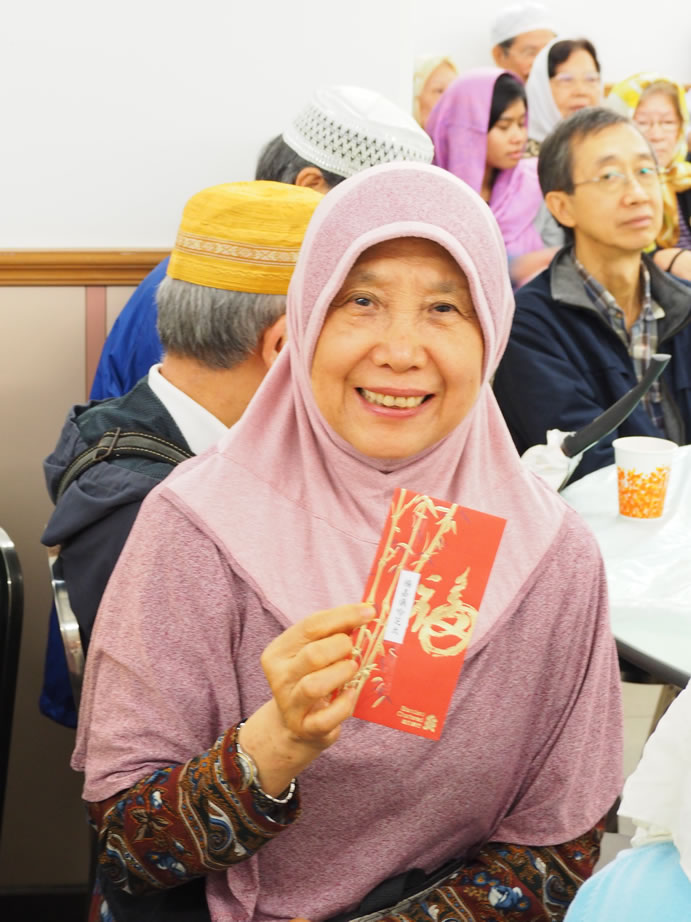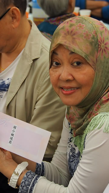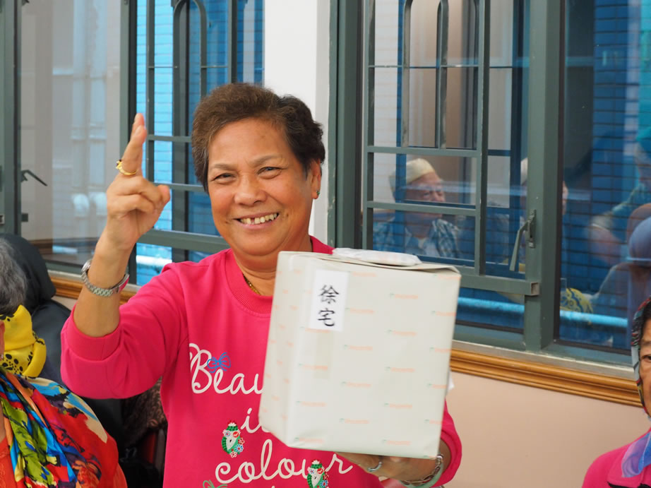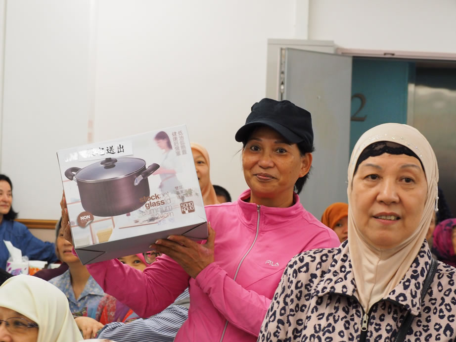 社薩智生主席和楊秘書長、楊興文阿訇及其他執委亦一早到社恭候長者們的到來,在2/F大堂禮品琳瑯滿目,這些利士及禮券、餐券,禮品等來自我們的社員、教胞的捐贈。