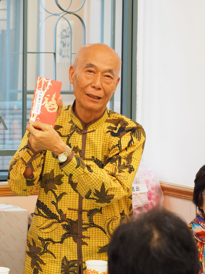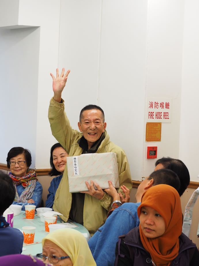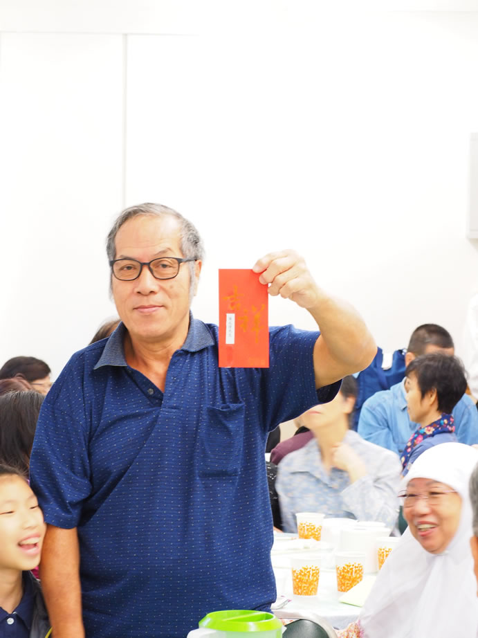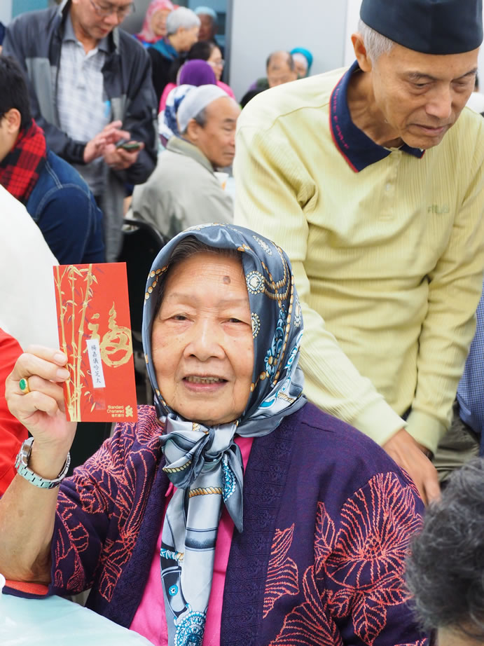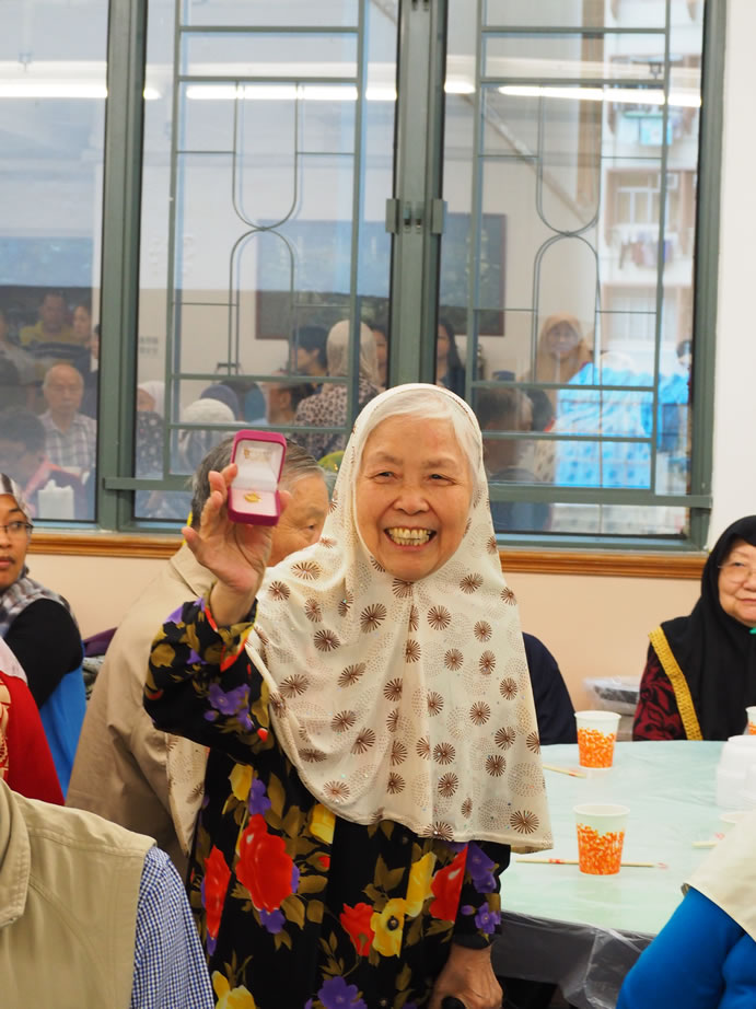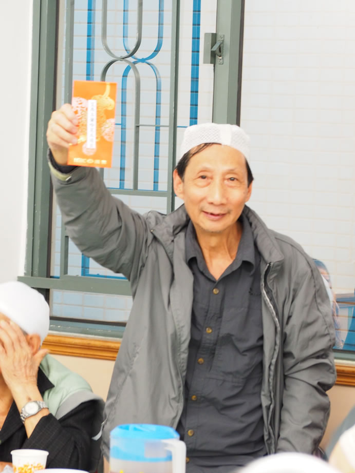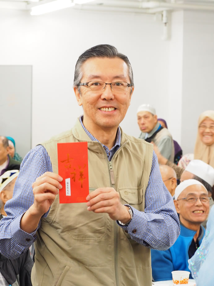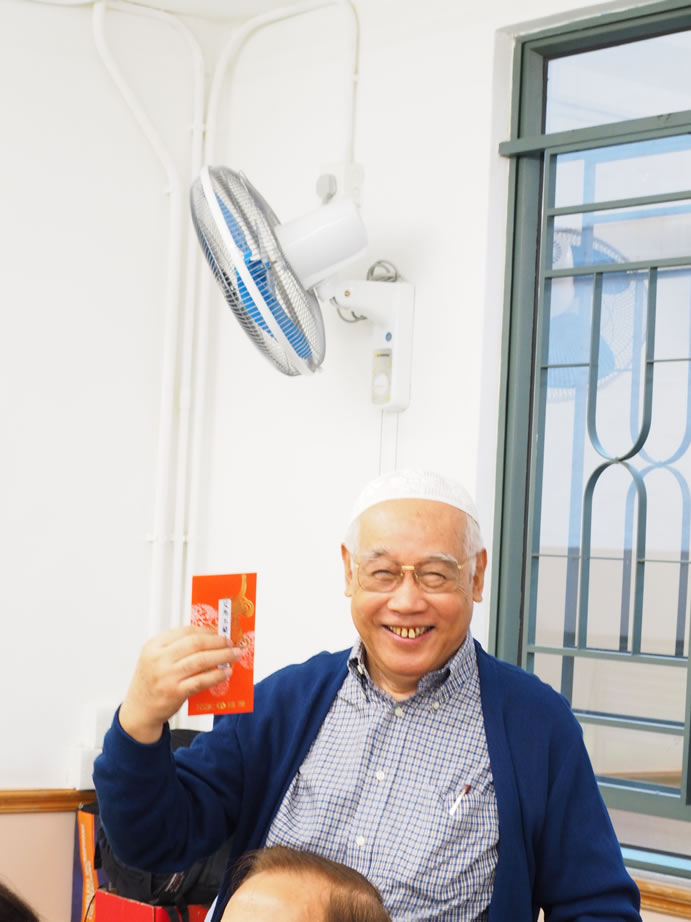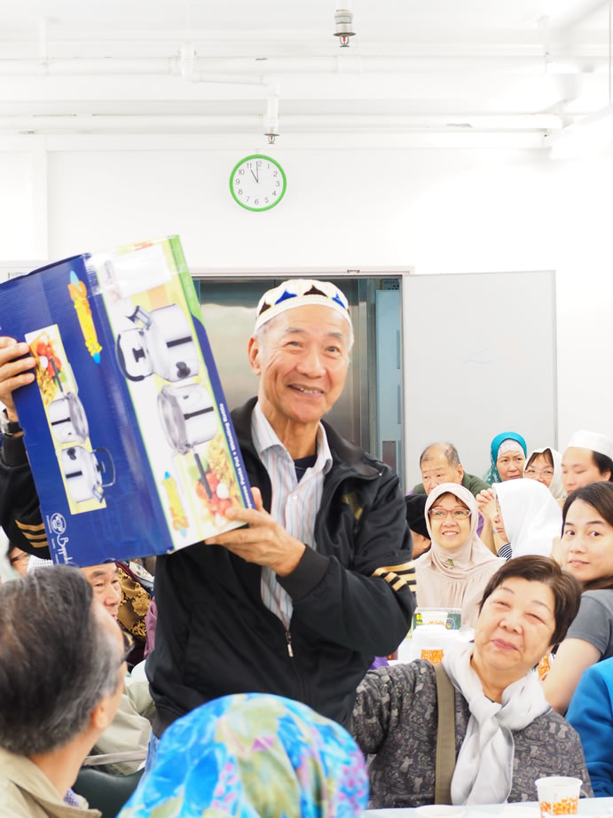 熱心的伊布拉謙‧薩,每年都為全場最長者男、女各一位送出3,000元大利士給他(她)們,另有20名八十五歲以上的長者每位亦獲500元,令長者深感欣慰,到會長者們人人都有機會做幸運兒,社方更專門備一份禮品予到會者每位一份,令大家盡歡而散。