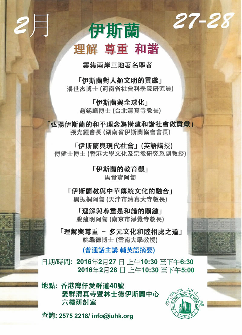 伊斯蘭 – 理解 .尊重. 和諧 研討會 雲集兩岸三地著名學者