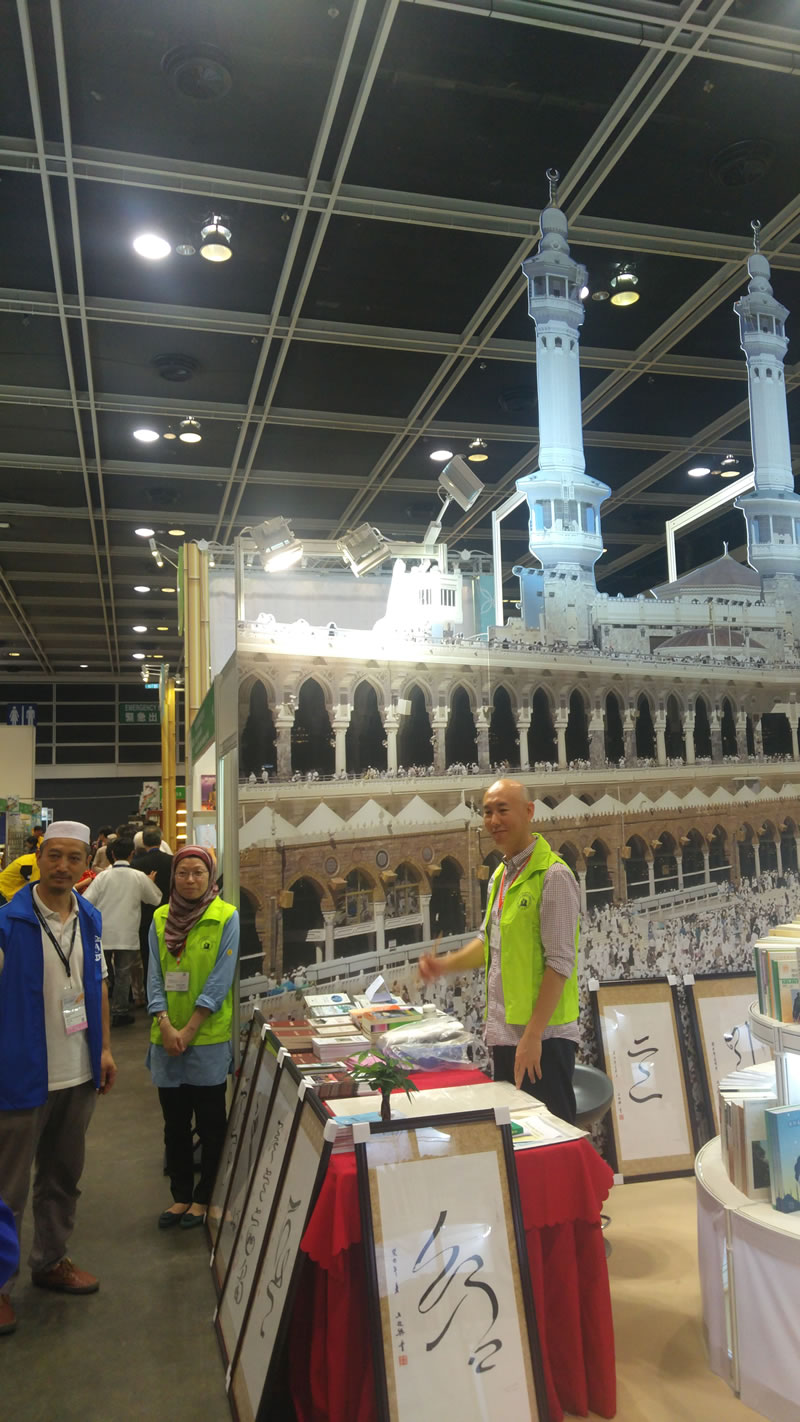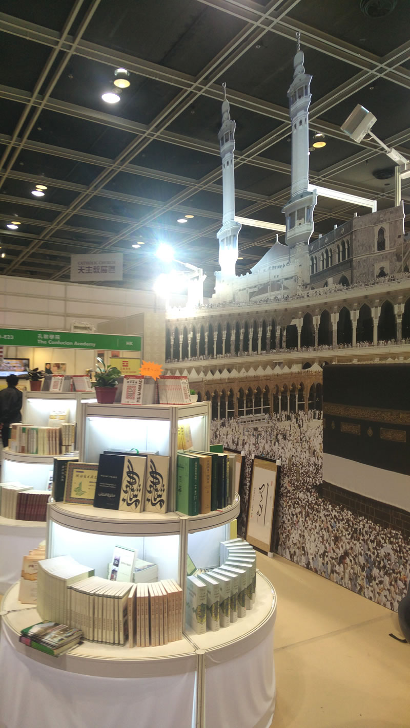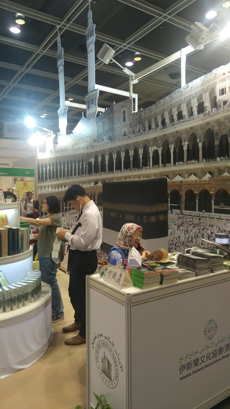 2016年7月20日,一年一度的香港圖書展覽會在香港會議展覽中心如期舉行,這個亞洲最大圖書盛會的宏大盛況無需贅述,矗立于展館3樓E24號展位的巨幅“克爾白”圖型,無疑是本次書展的一道靚麗風景,引來許多行人駐足觀賞,拍照留影,這裡正是由香港伊斯蘭文化協會和香港伊斯蘭聯會兩家團體聯合組織的伊斯蘭圖書展位元。