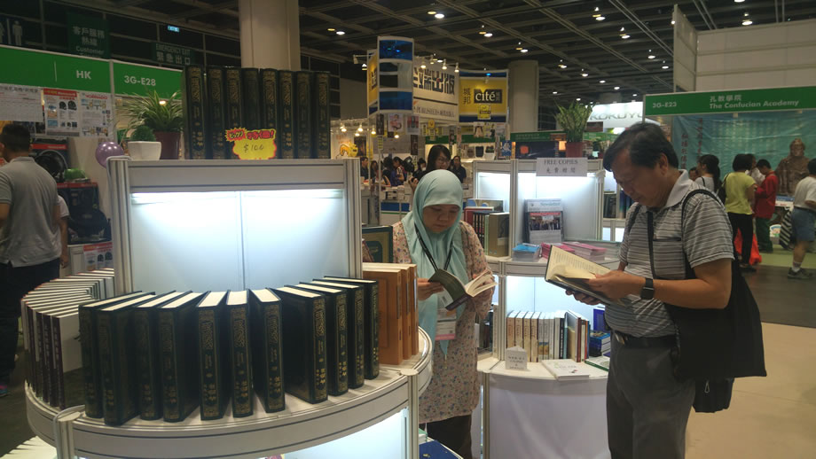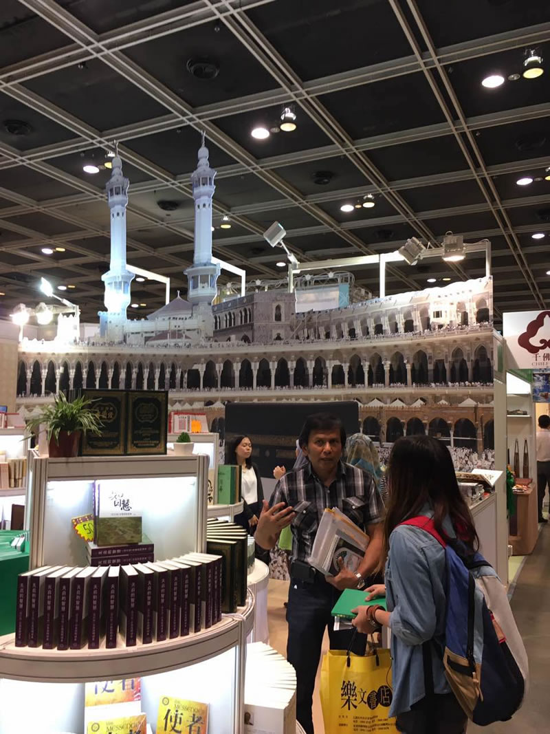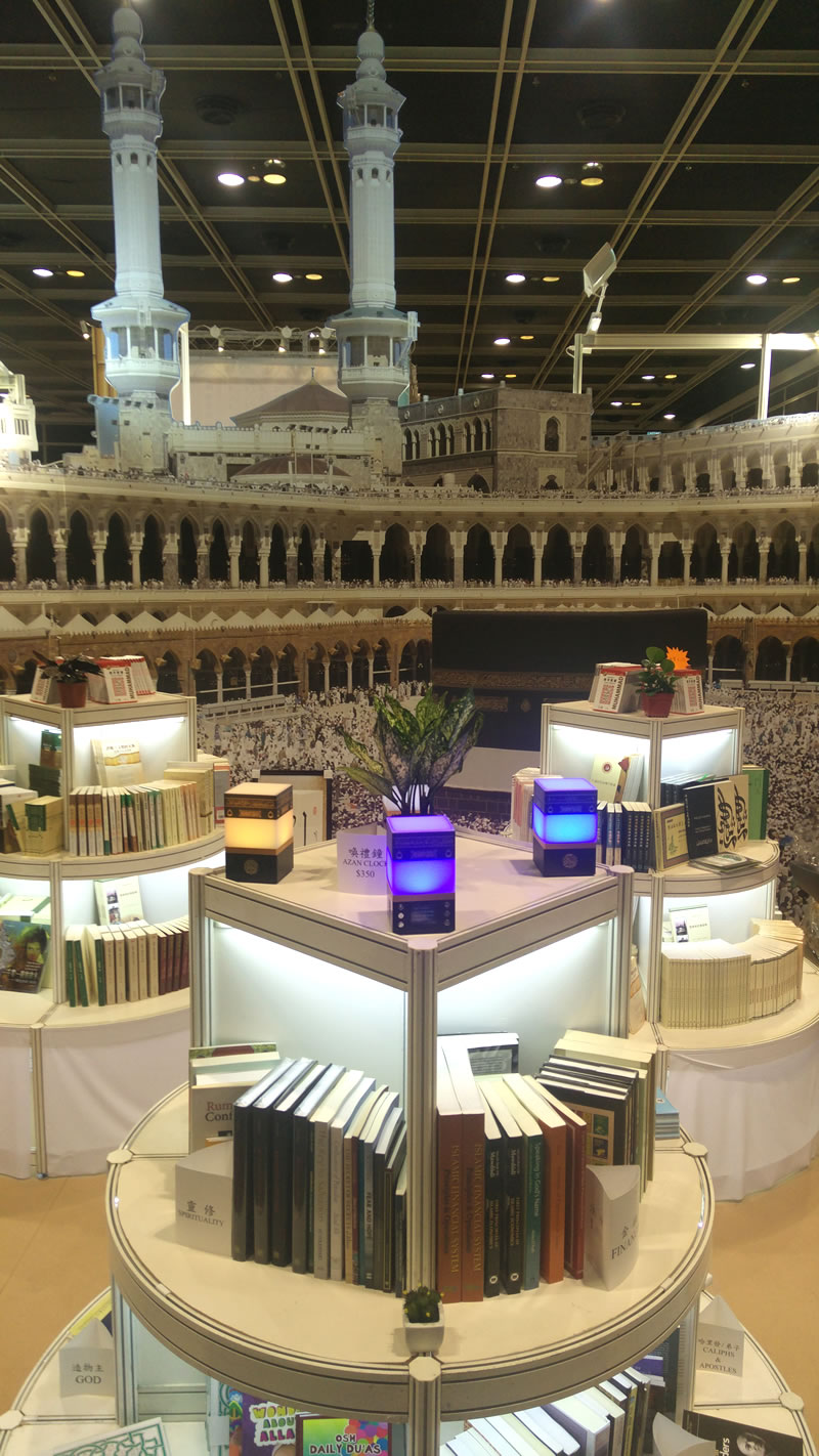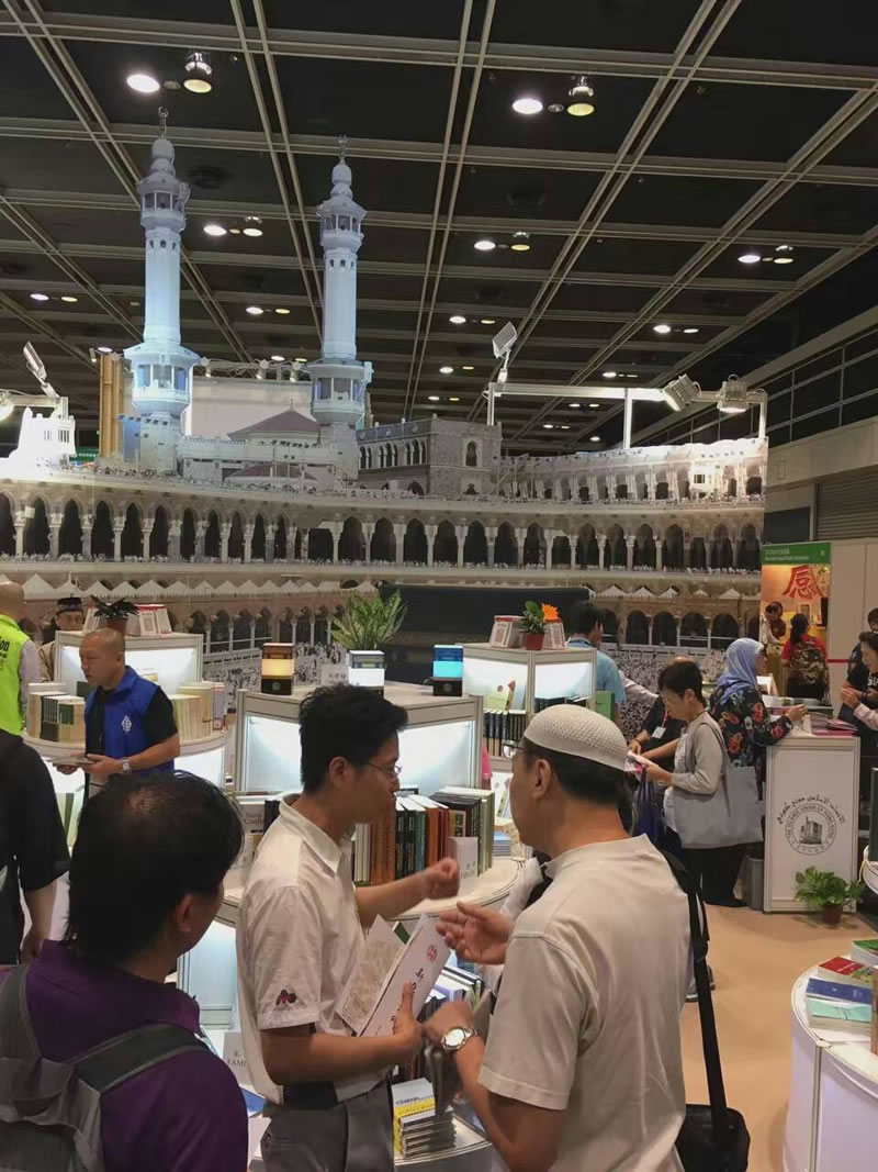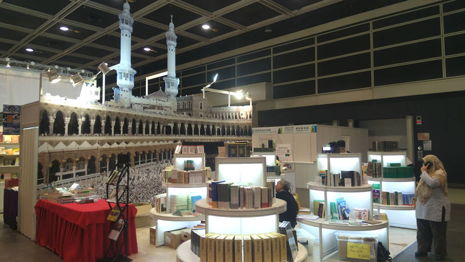 2016年7月20日,一年一度的香港圖書展覽會在香港會議展覽中心如期舉行,這個亞洲最大圖書盛會的宏大盛況無需贅述,矗立于展館3樓E24號展位的巨幅“克爾白”圖型,無疑是本次書展的一道靚麗風景,引來許多行人駐足觀賞,拍照留影,這裡正是由香港伊斯蘭文化協會和香港伊斯蘭聯會兩家團體聯合組織的伊斯蘭圖書展位元。