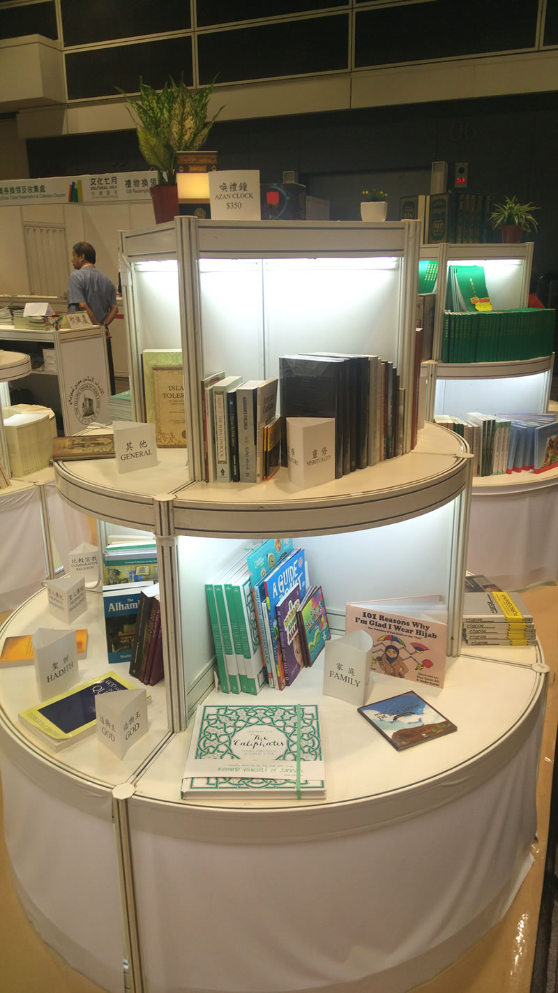 本次參展,從展廳裝飾到展臺設計以及圖書擺放都用足了心意,使整個展廳顯得簡潔大方又個性十足,充滿了濃郁的伊斯蘭風情。共展出圖書200多種,涵蓋古蘭聖訓、歷史文化、婚姻家庭、心靈修煉以及兒童圖書,中文英文兼有,簡體繁體並舉。同時,還準備了上萬份簡要介紹伊斯蘭的小冊子和宣傳彩頁,現場免費派送,展臺還備有椰棗供來賓免費品嘗。