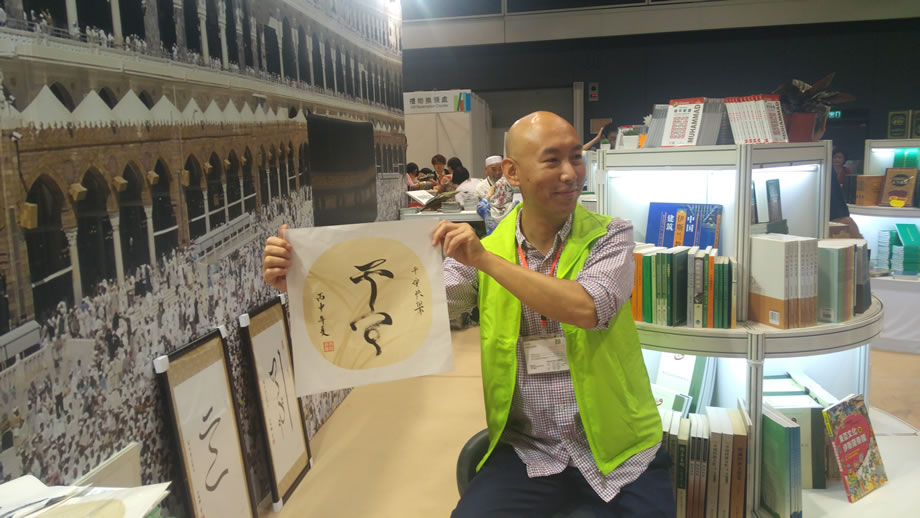 馬超興兄弟的現場阿語書法展示引起了眾人興趣,為客人免費設計書寫阿語名字的活動將展會摧向高潮,大家紛紛排隊等候,希望得到一張別具一格的阿語書法簽名。