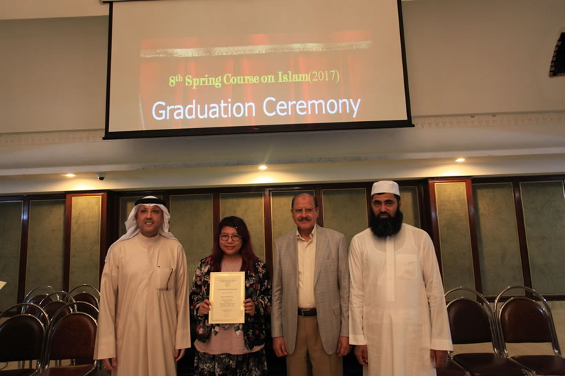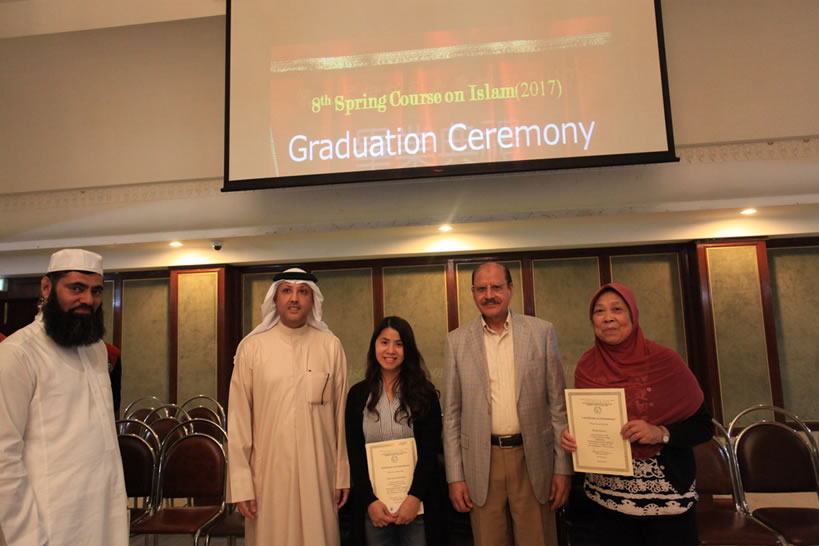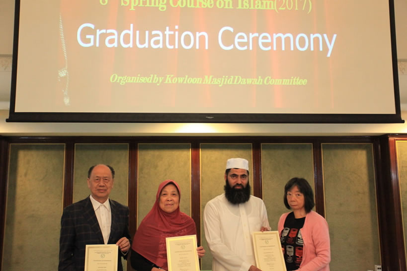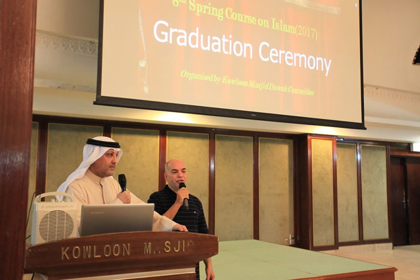 由九龍清真寺宣教委員會主辦的第八屆伊斯蘭春季課程已圓滿結束,並於二〇一七年五月二十日星期六在九龍清真寺禮堂舉行結業禮,敦請科威特駐港領事 Mr. Khaled B. Al-Mutairi 主禮,出席嘉賓包括香港回教信託基金總會義務秘書沙義哈智(Haji Saeed Uddin)、九龍清真寺教長阿薩德目夫提 (Mufti Muhammad Arshad), 穆罕默德 蘇威目夫提的(Mufti Muhammad Shoaib)、香港伊斯蘭聯會(伊聯)宣教委員會主席馬蓬偉哈智、會籍委員會主席 Mr. Aminul Haque 、宣傳及出版委員會主席 Haji Nasser El-Morshidy、九龍清真寺宣教委員會主席馬田先生 ( Mr. Matin Abdul Farooqi) 等。