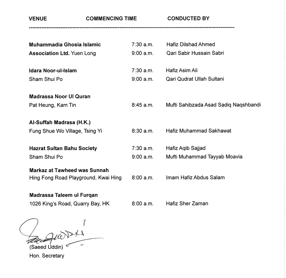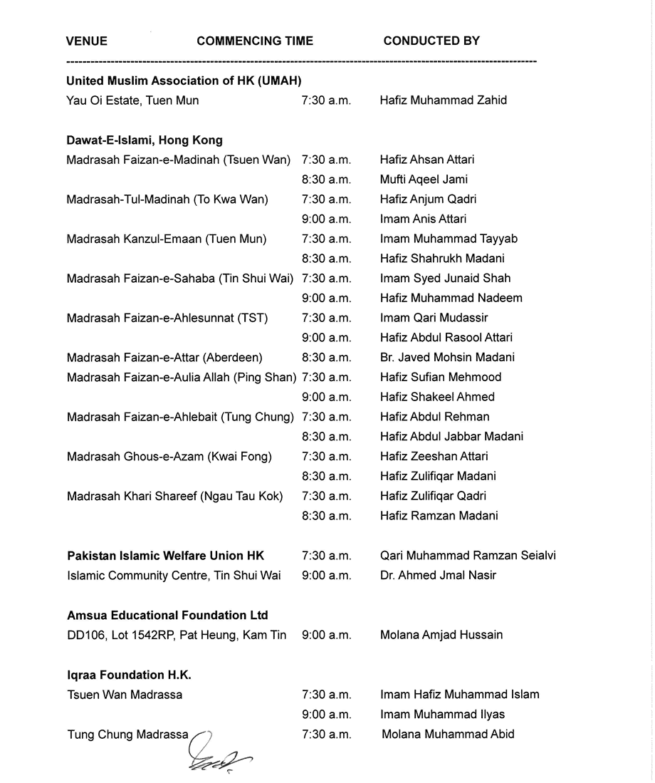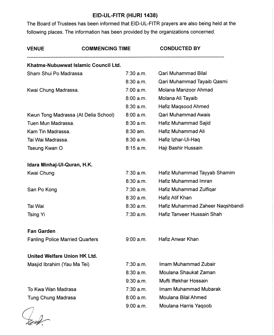 開齋節會禮安排(HIJRI 1438)