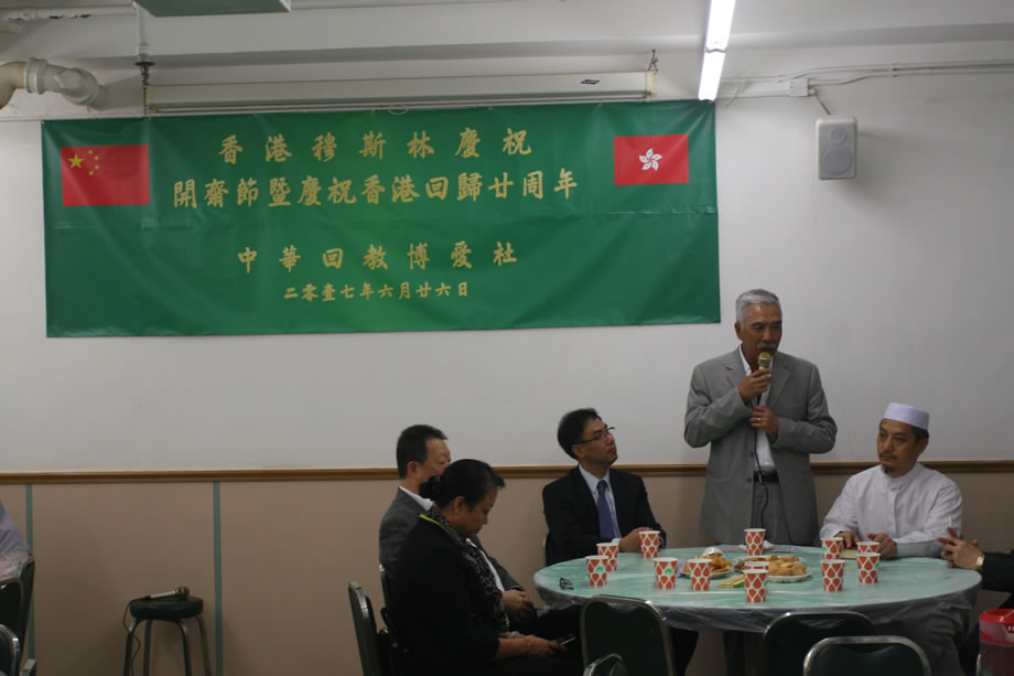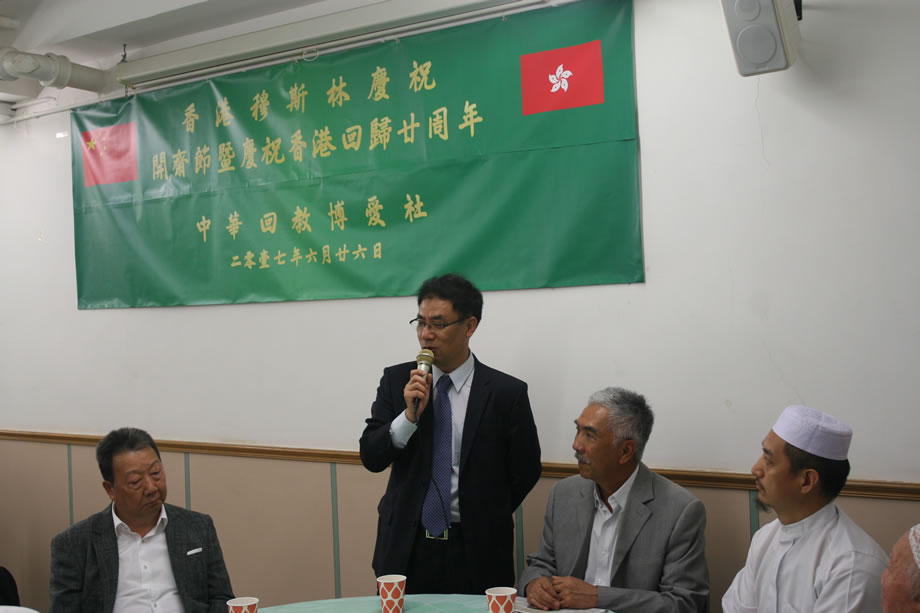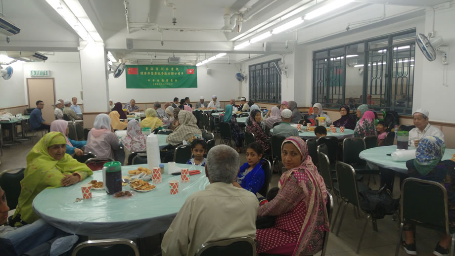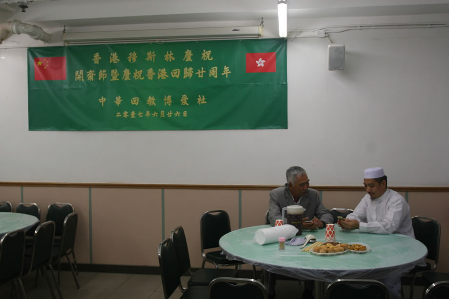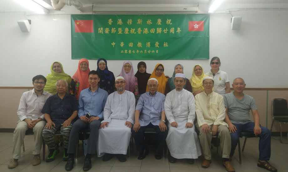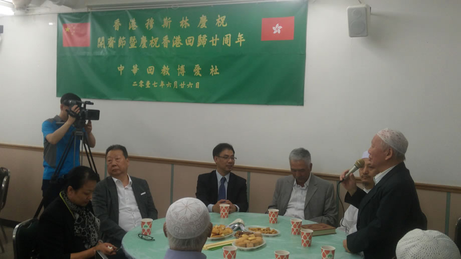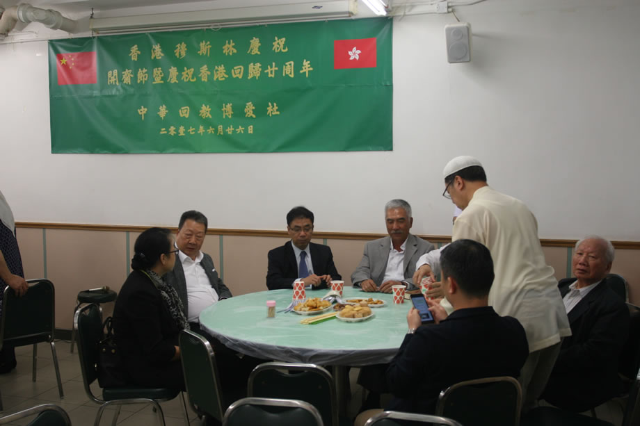 當晚,120多名中外穆斯林會聚中華回教博愛社二樓大廳,共同歡慶開齋節,同時慶祝香港回歸祖國二十周年。