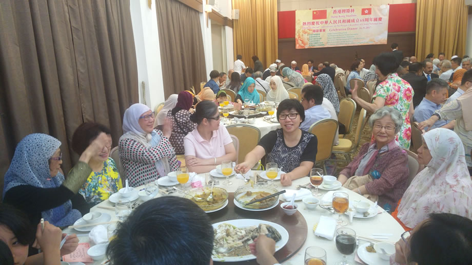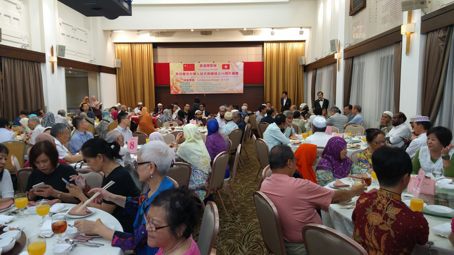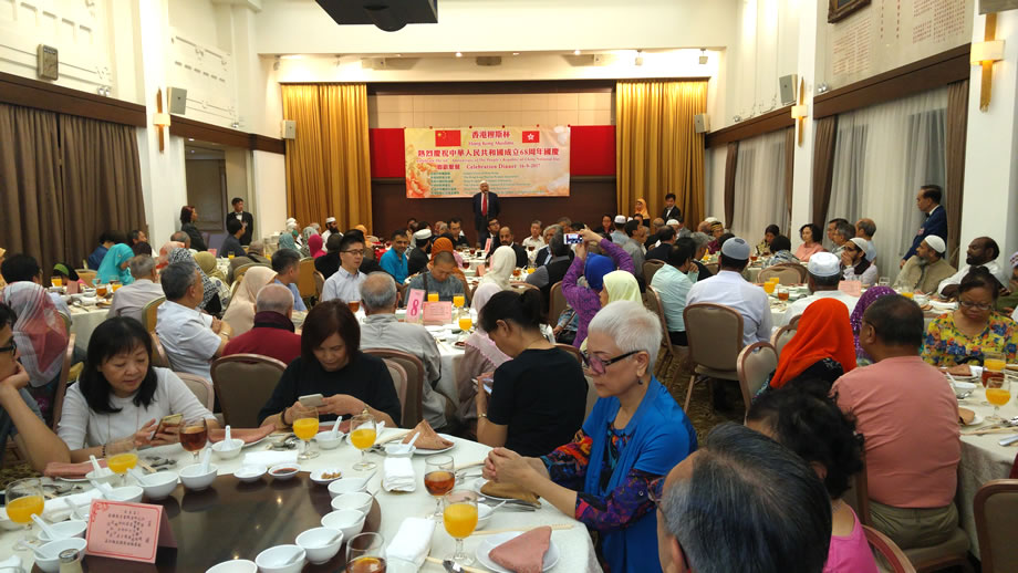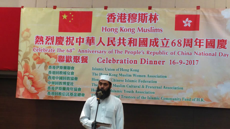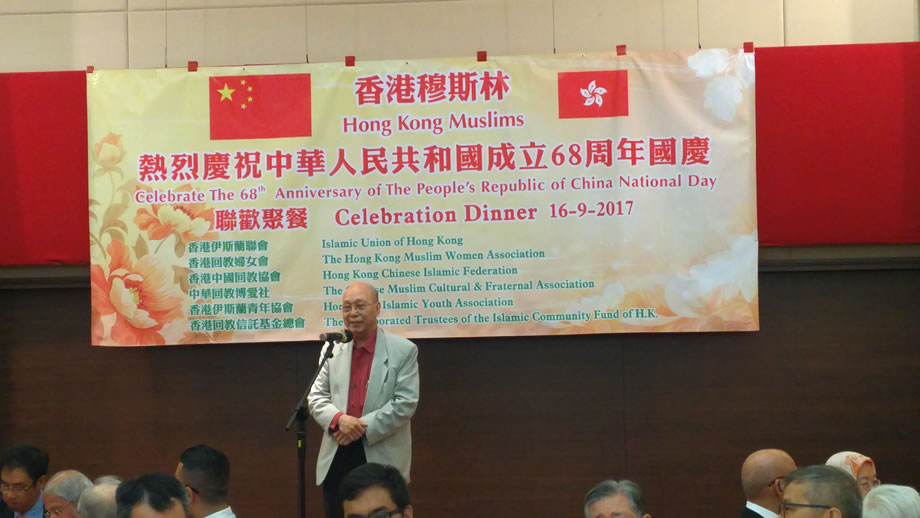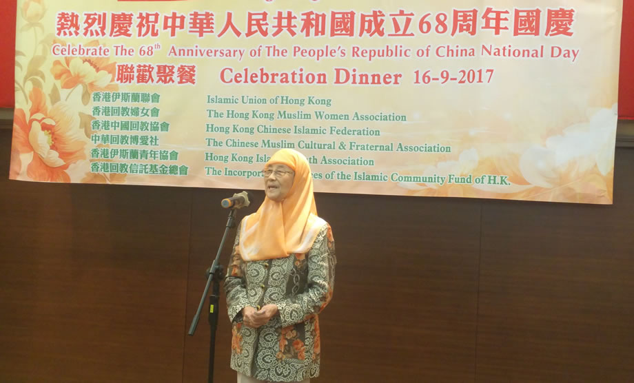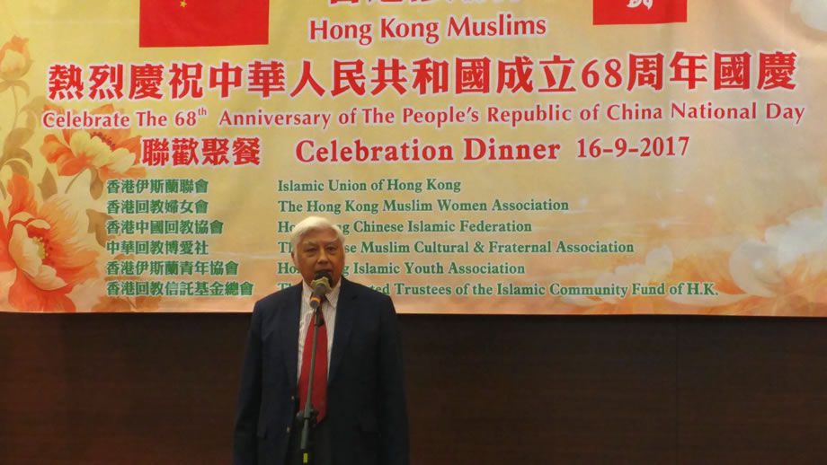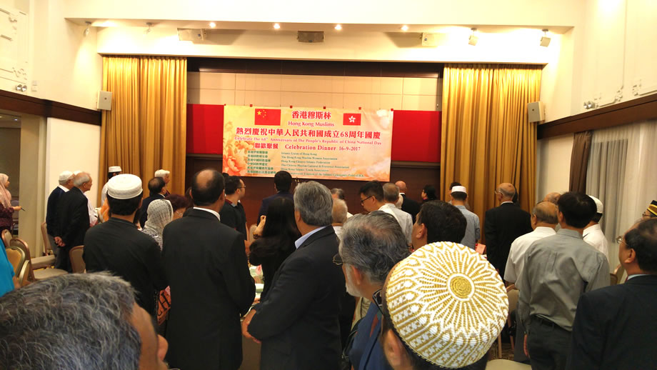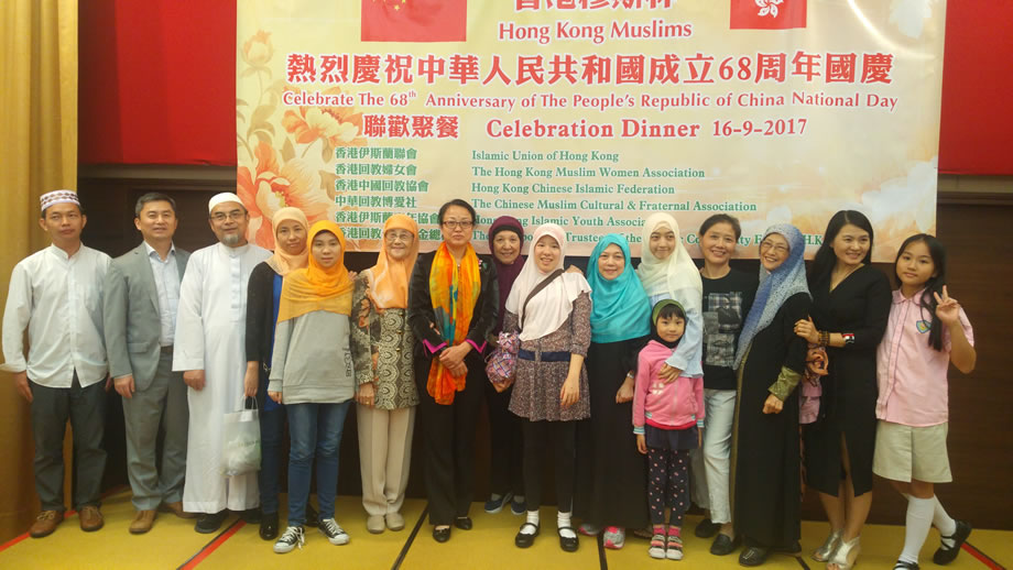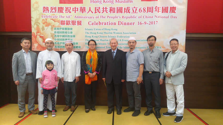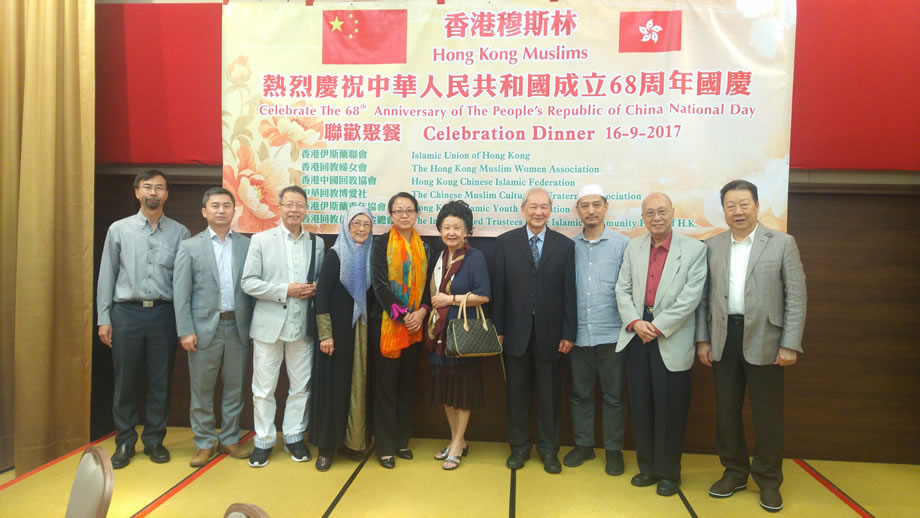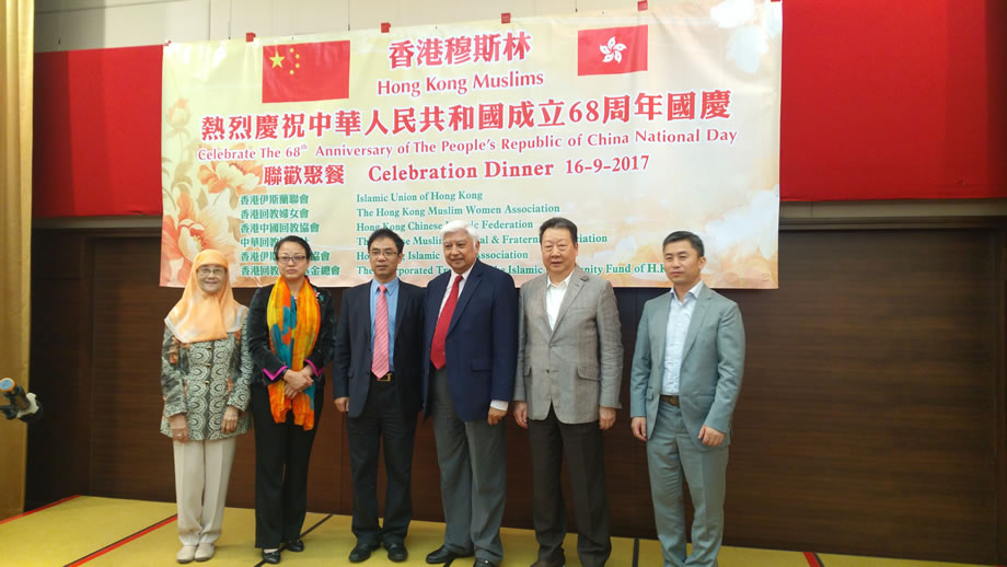 2017年9月16日晚上,香港中華總商會8樓的禮堂內,燈火輝煌,喜氣洋洋,香港穆斯林在這裡隆重舉辦慶祝中華人民共和國成立68周年國慶典禮。本次慶典,由香港伊斯蘭聯會,香港回教婦女會,香港中國回教協會,中華回教博愛社,香港伊斯蘭青年協會,香港回教信託基金總會,6家穆斯社團聯合舉辦,中央人民政府駐香港特別行政區聯絡辦公室的相關官員到會祝賀,來自香港各界的100多位穆斯林代表參加了慶祝活動。
