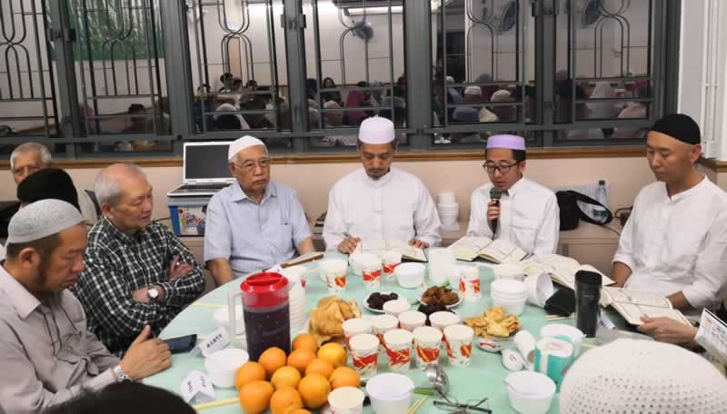 中華回教博愛社舉辦紀念眾先人活動 2018-05-29 11:19:55 瀏覽 正值穆斯林尊貴的齋月,5月27日,博愛社舉辦了紀念眾先人活動,為已故的眾位先人做“嘟啊”,祈求真主饒恕他們的罪過,提升他們在天堂的品級。 阿訇誦讀了古蘭經“雅辛章”,來自內地的馬豐英阿訇誦讀了“至仁主”章,180餘人參加了紀念儀式,最後大家一起開齋。 感謝博愛社主席薩智生先生,秘書長楊議護先生,秘書馬姑娘以及諸義工,為本次活動的成功舉辦做了充分準備,祈求安拉回賜他們。
