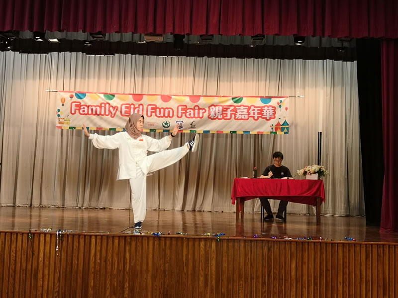 在學校的禮堂表演了精彩的文藝節目,小朋友的舞蹈、跳繩表演贏得了觀眾的陣陣掌聲;太極功夫與書法連袂出演,恰到好處;印尼姐妹的贊聖,將演出推向了高潮。
