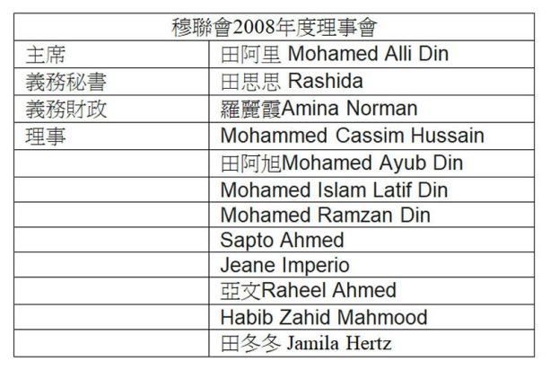 新一屆理事推舉Amina田太及Ahmed Raheel 為董事(Directors),並於2010年3月29日完成公司註冊手續,本應可以慶幸在一班熱心能幹的理事領導下繼續前主席未竟的遺願。按步接管各項事務。正準備辦理銀行戶口授權簽名的手續之際,突然發現有人另行往公司註冊處登記為本會之理事,令銀行戶口更換授權簽名手續未能完成。