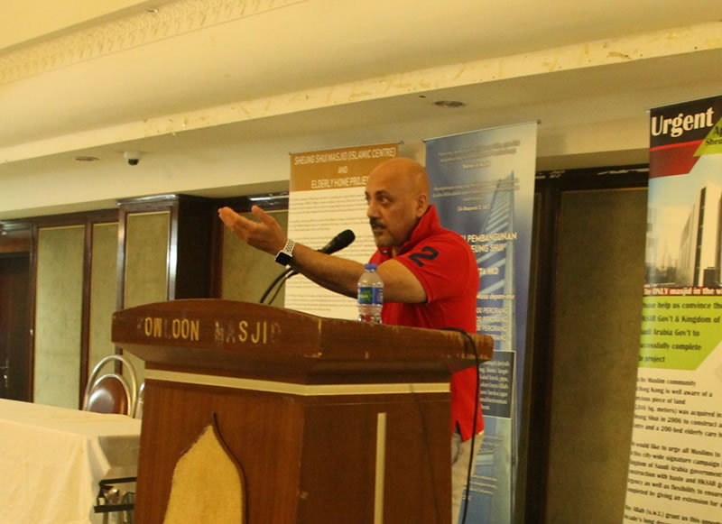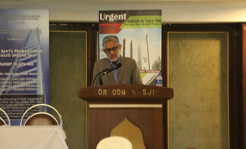 Haji Hameed Jalal,行動委員會的顧問,伊斯蘭信託基金會前主席呼籲大家要頂力支持,慷慨解囊,令清真寺能早日建成。他分享以往參與籌款重建九龍清真寺的經驗。