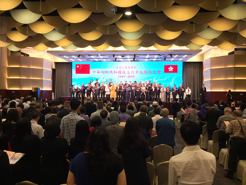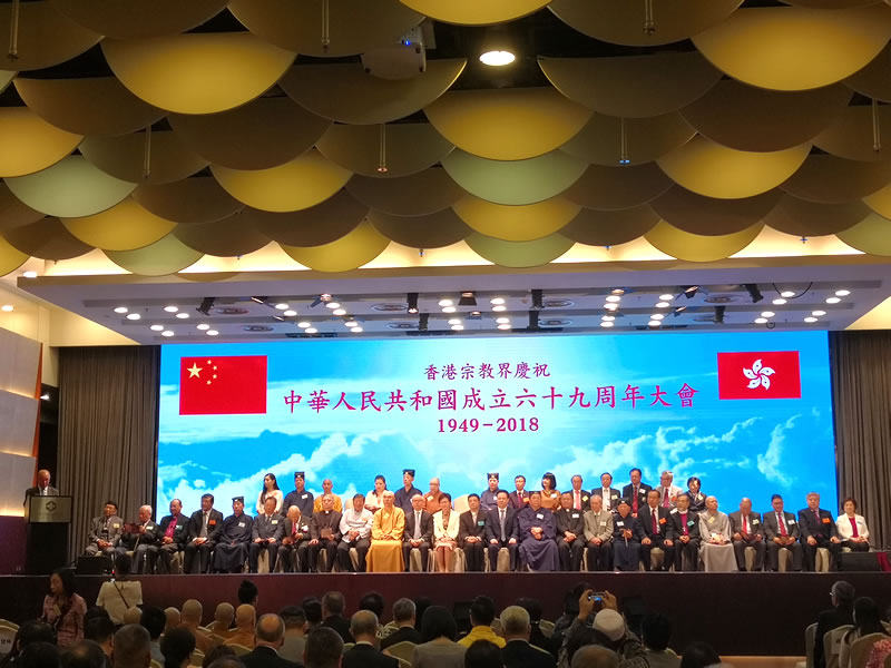 2018年9月19日,香港宗教界于九龍尖沙咀龍堡國際賓館舉行慶祝中華人民共和國成立六十九周年大會,大會由香港特別行政區行政長官林鄭月娥女士及中央人民政府駐香港特別行政區聯絡辦公室副主任譚鐵牛先生主禮。