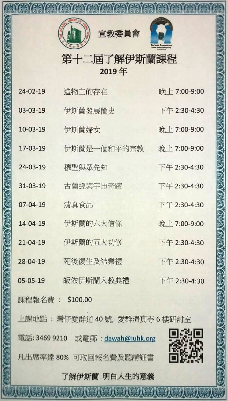 香港伊斯蘭聯會:第十二届「了解伊斯蘭」课程(2019)