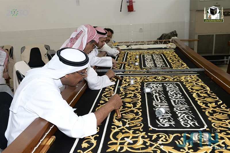 幔帳是染成黑色的純天然的絲綢製作而成,需要耗費670公斤天然絲原料,上面刺繡著清真言以及古蘭經文,由220多嫺熟的工人刺繡縫織而成。每一年在朝覲期間يوم عرفة 阿爾法日(伊曆12月9日)都要更換一次。