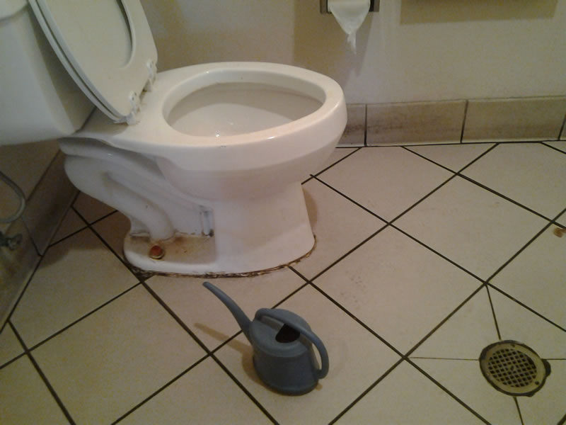 聖達戈是一座海港城市,經網上查詢,我們傍晚在市區找到一家波斯清真館,停車後發現正在裝修。驅車在郊外才找到一家清真快餐館,這是東非索馬里穆斯林開設的,顧客大多為過路的非穆斯林人士,也有外國穆斯林光顧。這裡店小,設有一間男女共用的洗手間,唯一的抽水馬桶旁邊放置一個“湯明壼”,這是為穆斯林小淨專用的。索馬里穆斯林多麼周到,令我肅然起敬!我破天荒地拍攝一張廁所內景,抽水馬桶和“湯明壼”。
