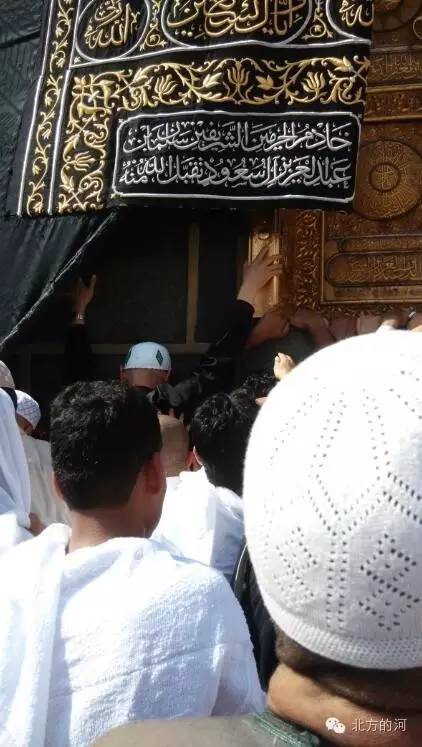 眼前就是“穆勒太茲姆”(ملتزم/Multazim)。它指的是從鑲嵌的黑石到天房高高金門之間的一段距離,詞彙的含義是“抓住、擁抱”。傳說在這裡作出的祈求,真主一定會應允——我猛地懂了那些緊緊攀著金門門檻的手臂!