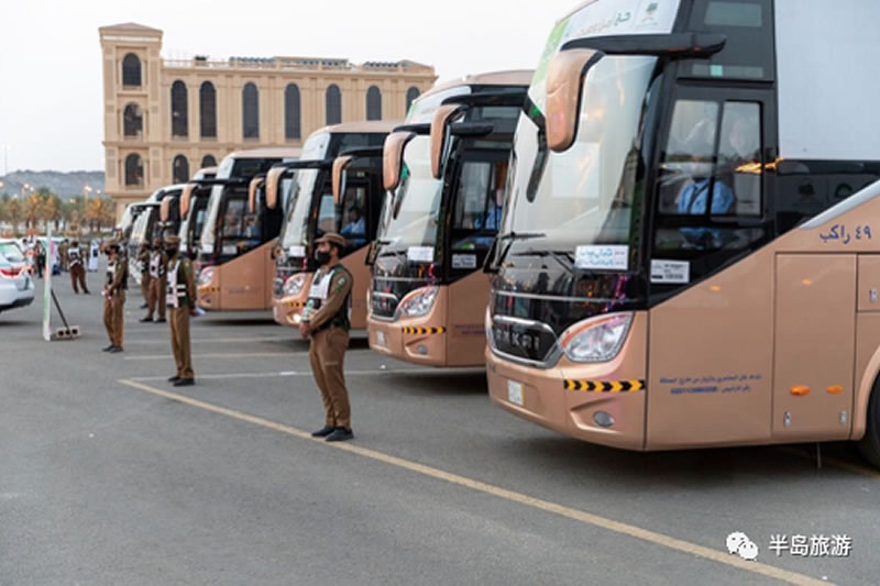 三、所有大巴按計劃在禁寺指定的區域等待哈志,所有哈志要求保持距離,遵守各自團長的指示安排。