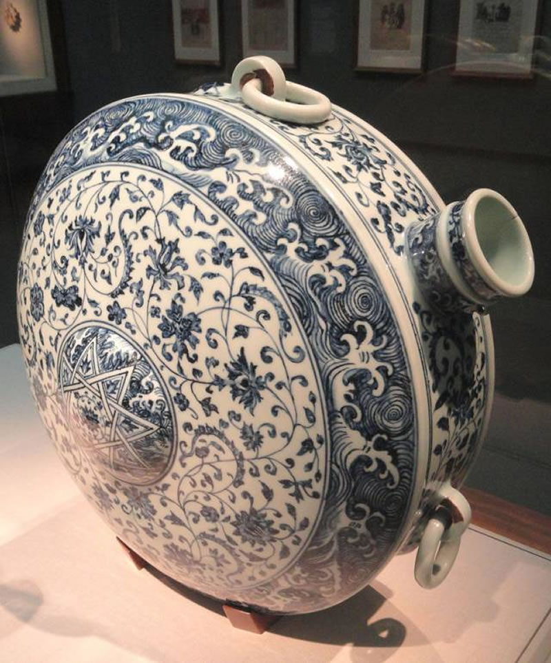 更有甚者,弗利爾美術館收藏的青花背水壺,正中央畫的就是伊斯蘭教的八角星: