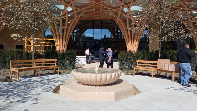 新寺不但讓人心曠神怡,其設施還一應俱全,足以照顧到穆斯林群體的不同需要。禮拜殿之外,還有演講廳、會議室、辦公室,更有方便傷殘人士使用的洗小淨設施、具隔音功能的婦女親子禮拜間,又有咖啡廳、花園、休憩空間和地下停車場。一進清真寺大閘,圓形水池即迎面而來,兩旁設置長木凳,兩步之外有小花園。無疑,新劍橋清真寺為穆斯林提供了一個多元的群體生活空間。