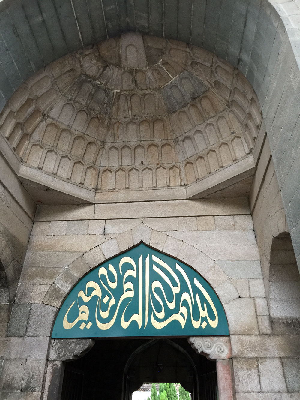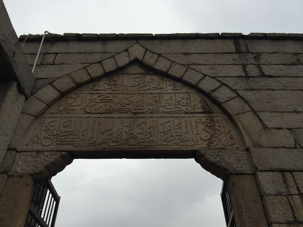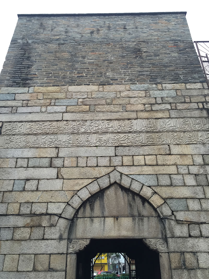門樓後牆上兩行阿拉伯文石刻,則記載著清淨寺的創建年代重修時間以及最早的名稱。