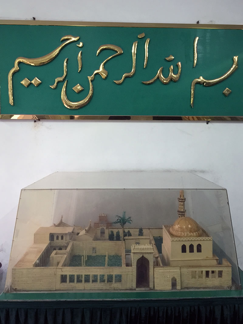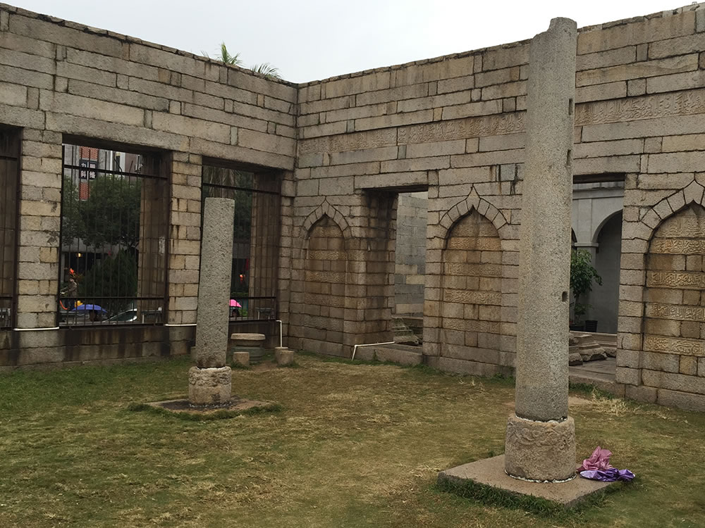 這牆中凹入部分是當年禮拜大殿的講經台,牆壁上這些典雅方朴的阿拉伯文石刻,全部是《古蘭經》經句,這是西元十世紀以前阿拉伯伊斯蘭禮拜大殿的流行建築模式,如今即使在中東阿拉伯地區也很少見。由於無法複建主禮拜大殿的圓頂,西元1609年穆斯林在寺內增建一間小禮拜殿。