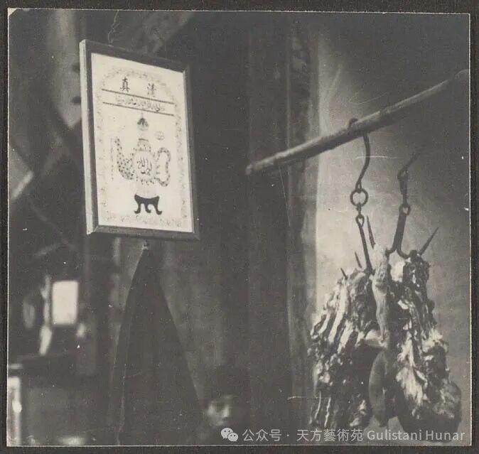 由於湯瓶壺的普遍,它在清代時候已經成了回民的標誌。過去的中國商店外都有“幌子”,是布幅、旗幟或者木牌,懸掛在店鋪門前,用來表示店家營業的內容。因此,湯瓶就成了回民買賣上的一個醒目的標誌,中間繪製一把湯瓶,外面寫上“回回”或“教門”或者“清真”,表示這是回民的店,教中人一看便知,可以放心食用購買。如今,不但湯瓶已經少見了,畫著湯瓶的清真“教門牌”更是無處可見,徹底成為歷史檔案,只能在老照片中看到了。