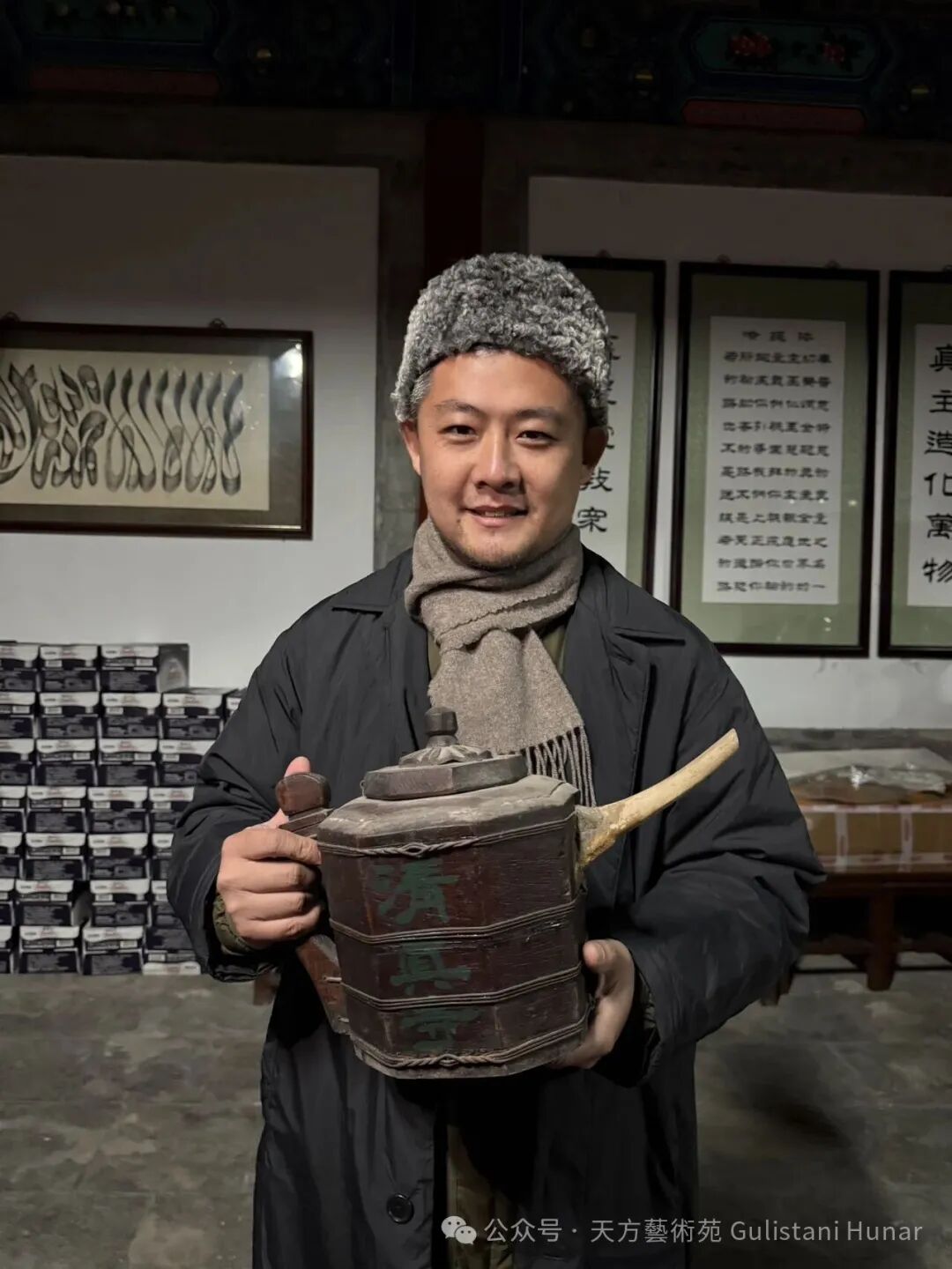 照片中的湯瓶在民國時的北京是常見的。用木頭拼接成,最有特點的是它的壺嘴,是用一根羊腿骨。這樣的做法是利用羊腿骨和出水口的形狀,讓人在洗淨的時候很容易控制水量。這種設計滿足了穆斯林不用“回頭水”、洗過的水自然流走的要求,也讓壺嘴的衝擊力適當,使最少的水達到最好的洗淨效果,節約用水、不浪費。