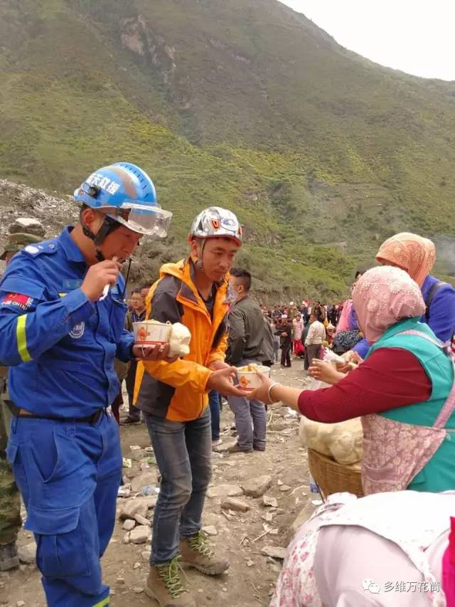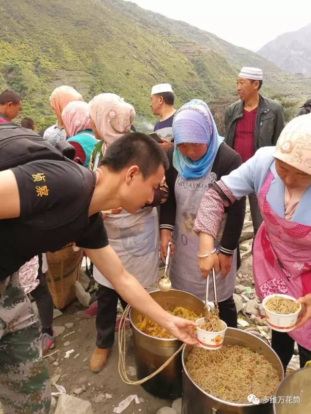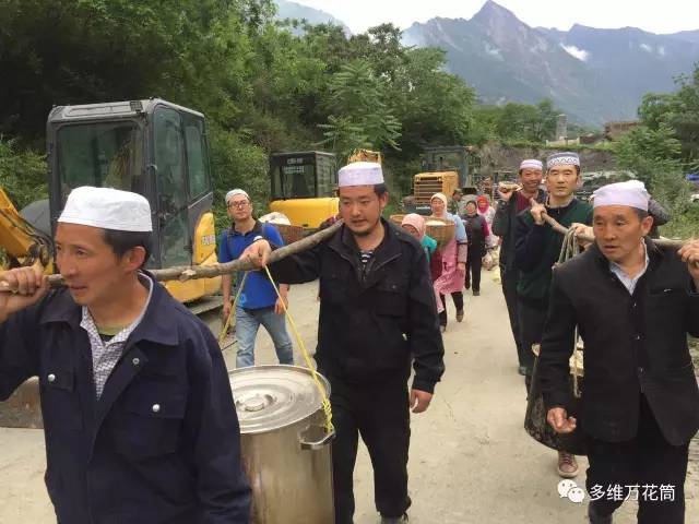 6月24日早上6點,四川省阿壩州茂縣疊溪鎮新磨村發生山體滑坡,截止目前官方報導有100人失蹤,河道堵塞2公里。臨近的太平村清真寺聞訊後開始自發組織正在齋戒的村民,利用清真寺廚房,為災區製作飯菜,並在第一時間送往災區。