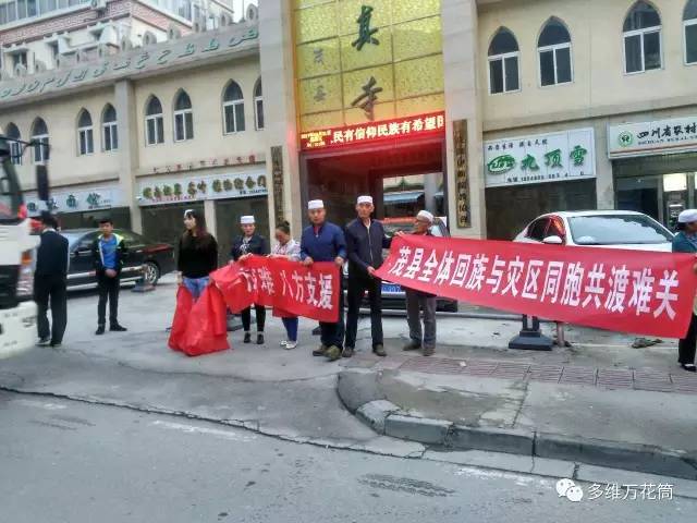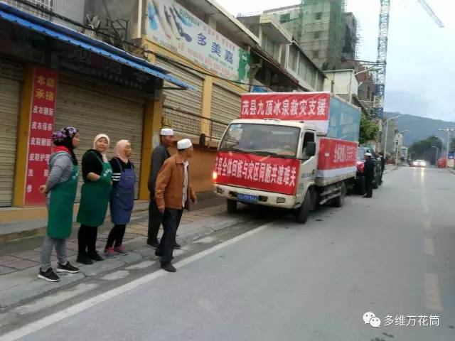 6月25日晨禮後,茂縣縣城清真寺組織救災物資運往災區