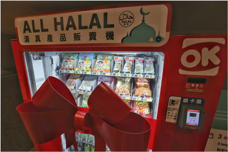 臺灣省首個清真產品自動售賣機近日出現在臺北世界貿易中心,為當地穆斯林市民及穆斯林遊客提供多種多樣的清真食品。值得指出的是,這20多類清真產品全都產自臺灣本地,它們都取得了權威清真食品認證。