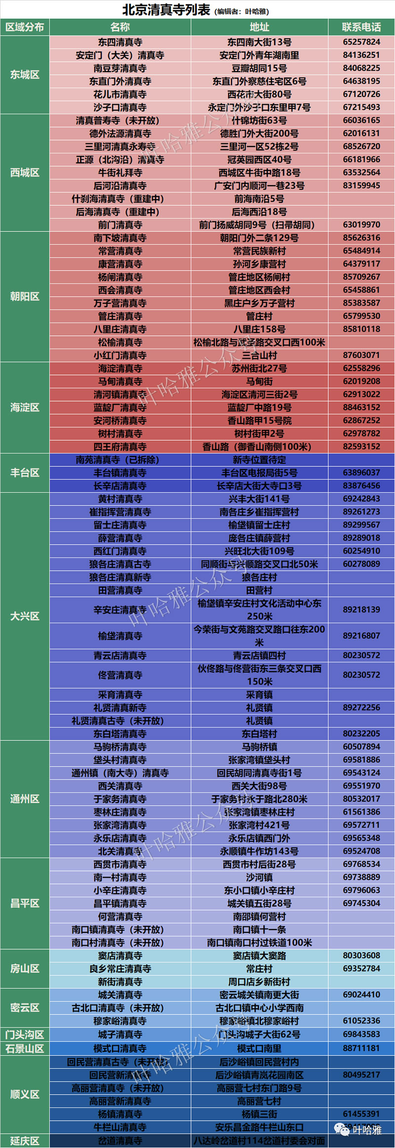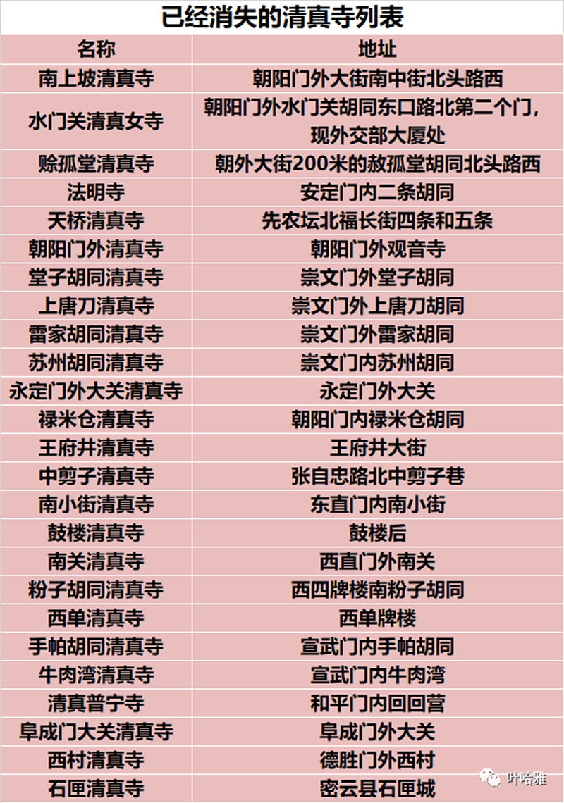 本文一共統計了109座北京地區的清真寺,北京現存清真寺82座,其中有63座是我曾經拜訪過的寺,已知曾經存在過但現已消失的清真寺27座,補充教子胡同清真寺、米市胡同清真寺,部分清真寺附了我用手機拍攝的照片。