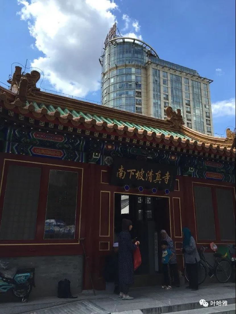 西紅門清真寺,新寺建在老寺旁邊,該寺始建於康熙二十六年(西元一六八七年),老寺男女都可在大殿一起禮拜,中間用幔帳隔開,週五主麻新寺大殿開放。