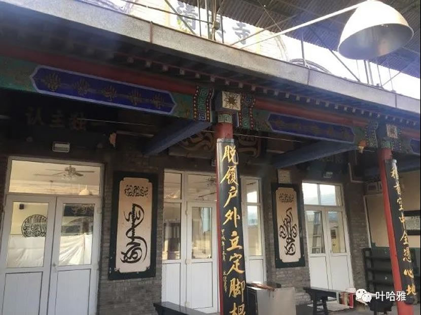 延慶八達嶺長城腳下的岔道禮拜寺,始建于明朝嘉靖年間,現在這座寺重建於2013年,是延慶唯一的禮拜寺。剛到寺門口發現大門緊鎖,跟旁邊的拉麵館打聽到寺對面的玉鑫齋老闆就是寺管,找到寺管,得知他是本村唯一的回民,姓玉,玉姓據傳是御賜姓氏,玉鄉老說他當年為了籌備建寺沒少跟上邊打交道,費了不少口舌,阻力很大,現在寺裡的阿訇是昌平臨時借調過來,平時沒人,主麻有三四十人。