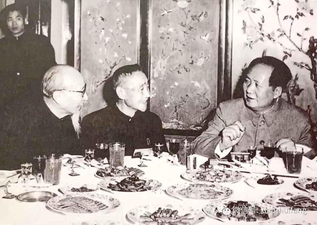 毛澤東同志宴請宗教界知名人士,與達浦生(左一)大阿訇親切交談。