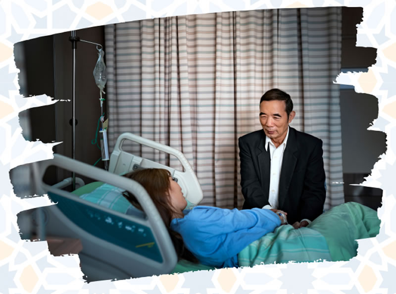 探望病患者,是一件嘉美的聖行。不僅如此,我們也應當為病患者祈禱,祈求真主減輕、去除他們的病痛,為自己掙取回賜,也給病患者帶去歡愉與慰藉。