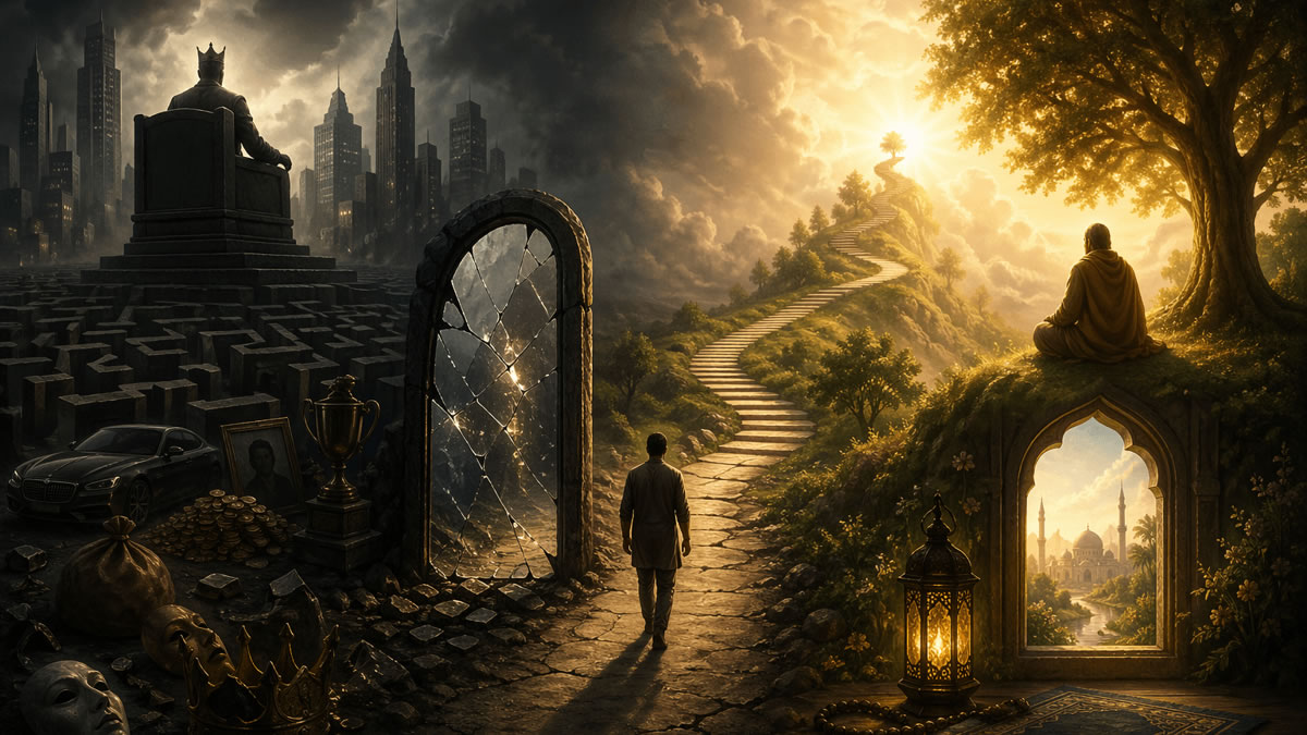 或許,我們這個時代的真正悲劇,並不在於不知曉這番真理,而在於我們不願去踐行。這層成功的面紗,依然死死地蒙蔽著我們的雙眼,哪怕我們早就認出了它的真面目。只要這層帷幕尚未真正被揭開,不是停留在紙上談兵的理論裡,而是在自我平靜的臣服中,我們與真主之間的那道鴻溝就永遠存在。