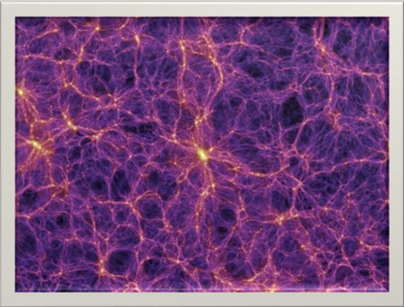 (2)宇宙編織:21世紀美、德、英三國科學家利用超級電腦繪製出宇宙的縮小版,其軌道能延伸至幾百萬光年,形成了精密的編織。