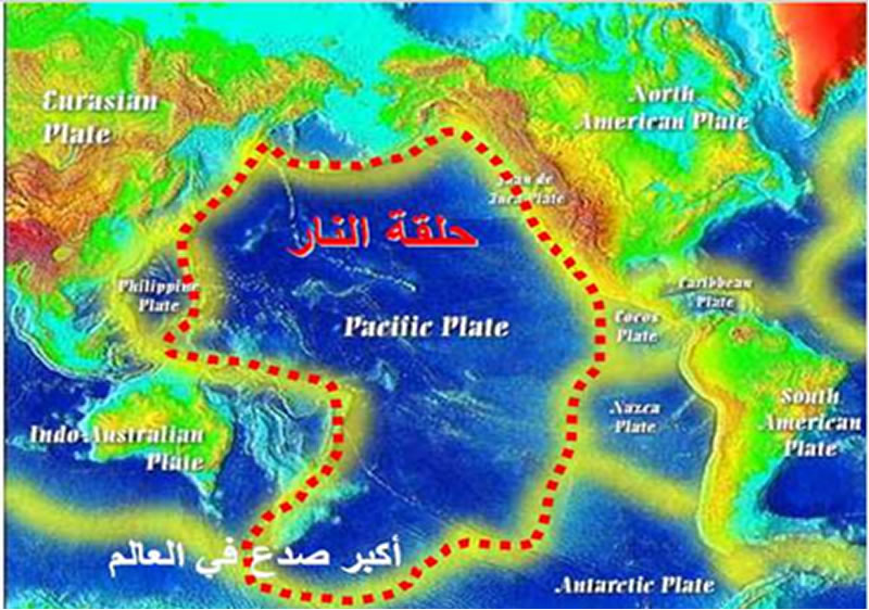 該火圈板塊的相互碰撞導致多發地震,科研者肯定世界上90% 的火山都集中在該範圍之內,同樣,世界上90% 的地震也集中在該地區之中。(這是根據美國地質局 USGS 的報導)
