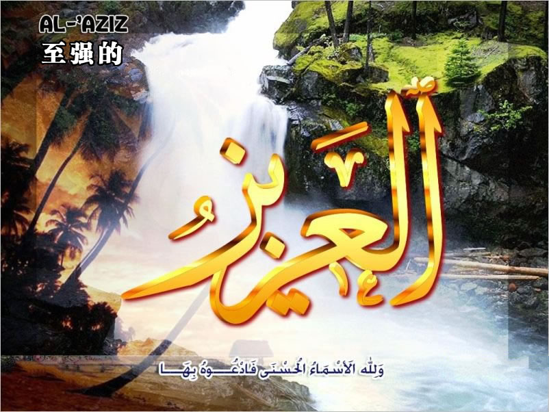 有時“阿齊茲”(至強的)尊名與“知識”搭配在一起,如:“這是至強者全知者的佈置。”(牲畜章:96)以示真主安排的精確。