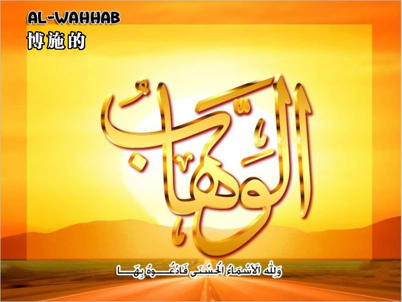 “瓦哈布”是真主的尊名之一,這一尊名出現於《古蘭經》:“我們的主啊!求你在你引導我們之後,不要使我們的心背離正道,求你把你那裡發出的恩惠賞賜我們,你確是博施的。”(儀姆蘭的家屬章:8)“難道他們有你萬能的、博施的主的慈恩的庫藏?”(薩德章:9)“他說:‘我的主啊!求你赦宥我,求你賞賜我一個非任何人所宜繼承的權柄。你確是博施的。’”(薩德章:35)