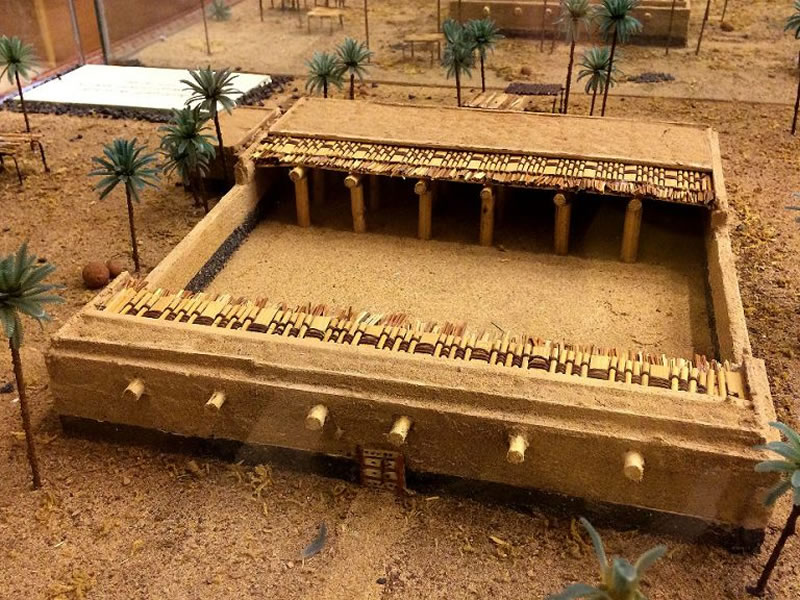 圖一: 先知清真寺雛形,即擴建之前。早期的穆斯林禮拜朝向並非麥加天房,而是朝向位於耶路撒冷的遠寺。