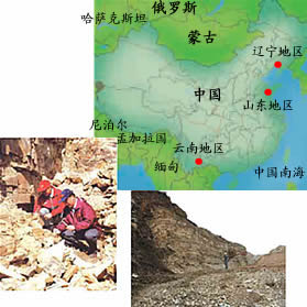 在北票進行的化石采挖工作。在該地區發現的一些開花植物化石是最古老的。